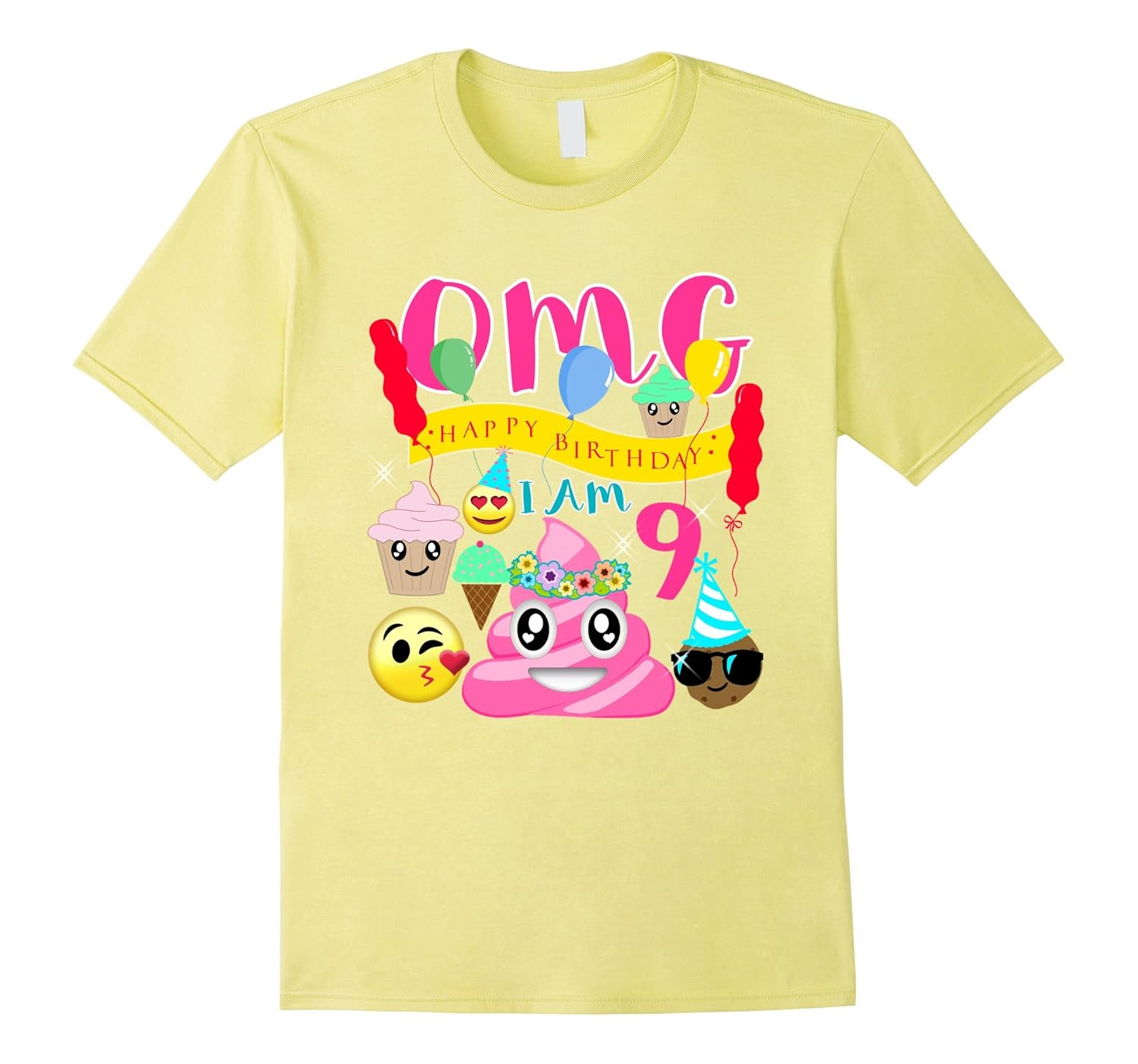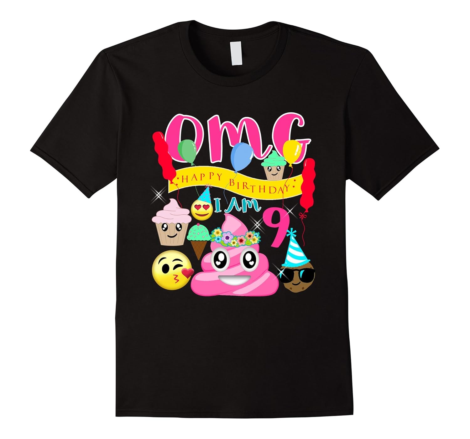 Solid colors: 100% Cotton; Heather Grey: 90% Cotton, 10% Polyester; All Other Heathers: 65% Cotton, 35% Polyester, Imported, Machine wash cold with like colors, dry low heat, 9th birthday poop emoji party t-shirt with balloons, hat, chocolate cookie, heart smiley and kissy icon, ice cream cone is a gift for a 9 year old girl who loves flowers, sunglasses icon or poo, kissing emoticon, princess, unicorn,pink lover, cupcake fan. Gift idea tee along with bag, pillow, toy, keychain saying I am nine is for girls who are 9 years old going to poop theme party, school pajama party, Halloween night cruise, boat ride, first day of school, poo costume party, Christmas, Thanksgiving. Lightweight, Classic fit, Double-needle sleeve and bottom hem