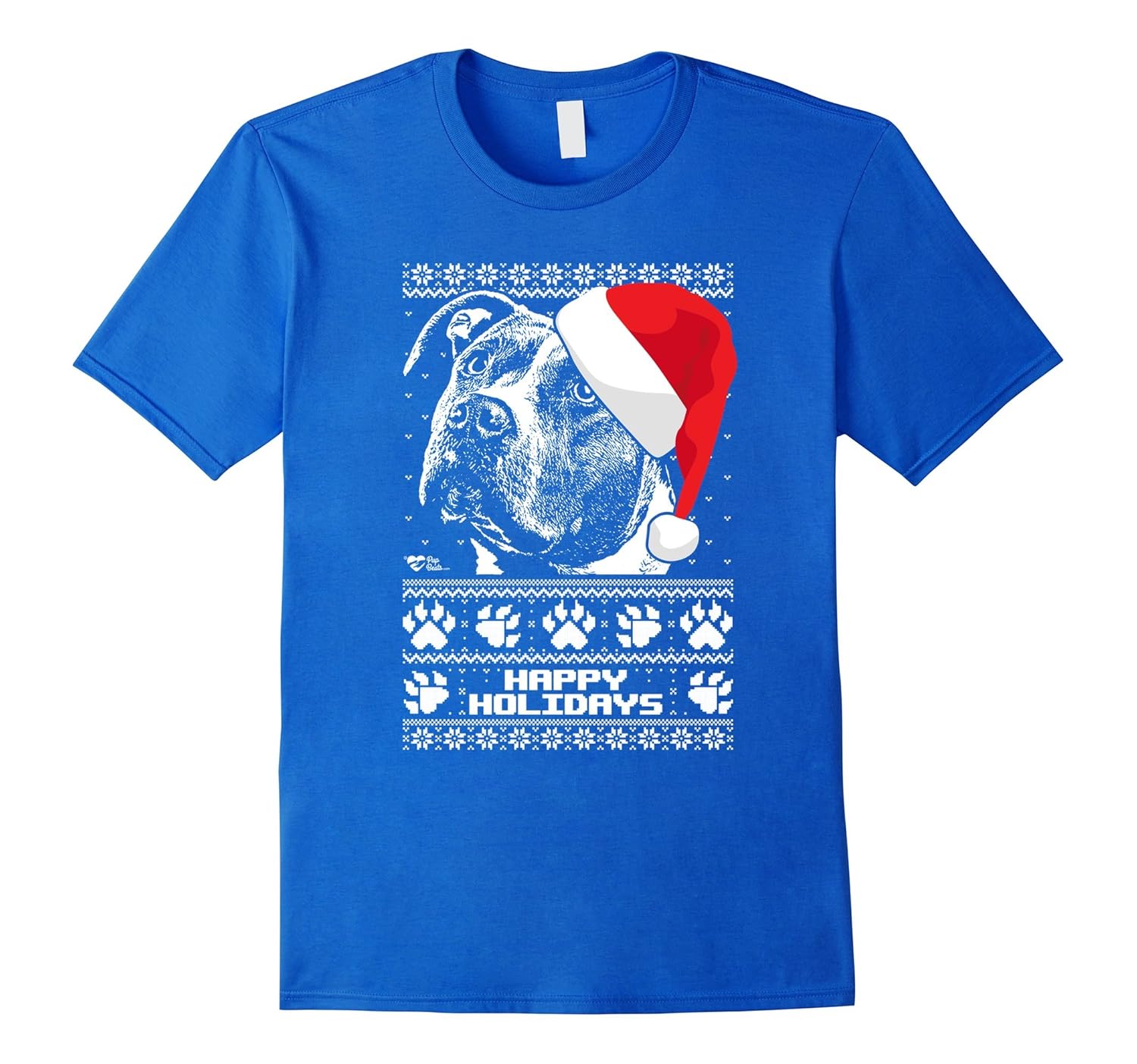 100% Cotton; Imported; Machine wash cold with like colors, dry low heat; A nice cute Pit Bull Happy Holidays Christmas T-Shirt. Staying home on Xmas this season and just want to snuggle up with your canine friend in the covers? Sounds like you need to purchase this cute Pit Bull tee for yourself today or purchase it as a gift for that best friend who is always with their Pit Bull. Happy Holidays Christmas tee design is known to be great conversation starter. Just remember my words next time you are out in a dog park.Order today!; This Pit Bull Happy Holidays christmas t-shirt is designed for you. Theres no other shirts online like this at the moment, so this Pit Bull apparel will make you as original as it gets! It comes in a variety of colors and sizes to suit your needs. This Cute Happy Holidays Christmas Shirt is designed and printed to be fitted. For a more loose fit, please order a size up. Be sure to check out the entire selection of our apparel youll be sure to find great gifts.; Lightweight, Classic fit, Double-needle sleeve and bottom hem