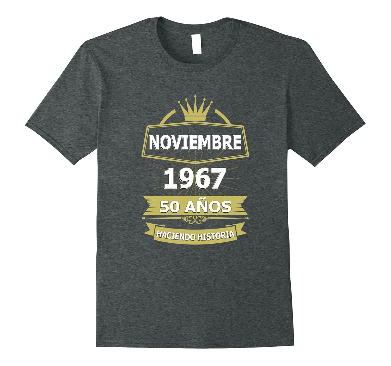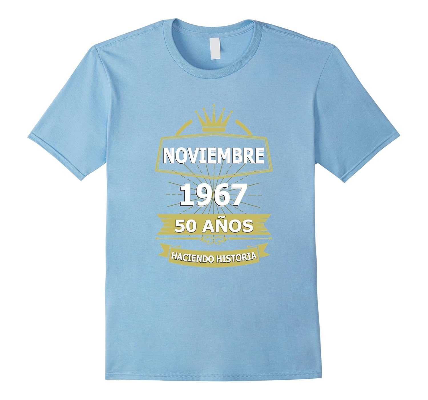 Solid colors: 100% Cotton; Heather Grey: 90% Cotton, 10% Polyester; All Other Heathers: 65% Cotton, 35% Polyester, Imported, Machine wash cold with like colors, dry low heat, Noviembre 1967 50 anos haciendo historia. Esta camiseta es un regalo perfecto para cualquier adulto celebrando sus 50 anos, nacido en Noviembre 1967. Nacido en 1967, Hecho en Noviembre, Hecho en 1967. Cumpleanos cincuenta. Made in November 1967 T-Shirt. This tee will be a great gift for any adult celebrating their 50th Birthday in November 67. Spanish November 67 50 years making history. If you know someone born in November 1967 get them this tee as a great gift in Spanish. Lightweight, Classic fit, Double-needle sleeve and bottom hem