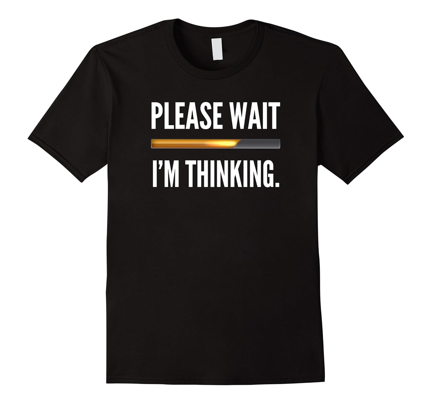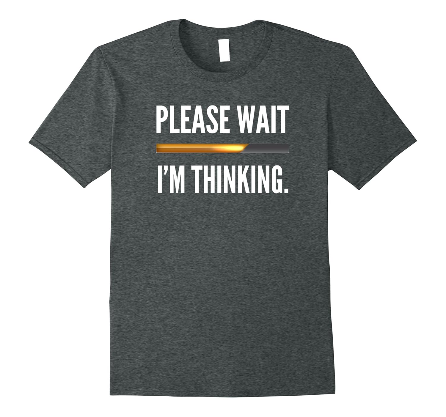 Solid colors: 100% Cotton; Heather Grey: 90% Cotton, 10% Polyester; All Other Heathers: 65% Cotton, 35% Polyester, Imported, Machine wash cold with like colors, dry low heat, This funny nerd t-shirt reads Please Wait I”m Thinking with a loading bar… Does your brain function like a computer. If so this is the IDEAL gift for you or any nerd friend. The perfect funny sarcastic nerd tee gift for any techie, geek, or nerd in your life that enjoys computers, programming, coding, and technology. Lightweight, Classic fit, Double-needle sleeve and bottom hem