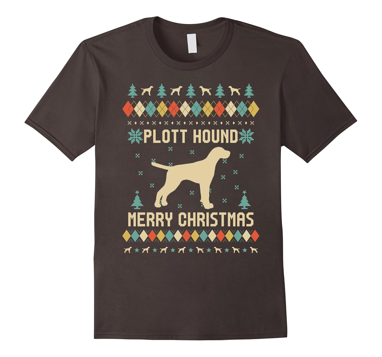 Solid colors: 100% Cotton; Heather Grey: 90% Cotton, 10% Polyester; All Other Heathers: 65% Cotton, 35% Polyester, Imported, Machine wash cold with like colors, dry low heat, Plott Hound Christmas T-shirt, Vintage Retro Style t-shirt, christmas gift ideas, Xmas gift ideas, Plott Hound Dog Lover T-shirts. Best Gift For Christmas, Dad, Mom, Daddy, Mother, Garandpa Or Everyday, Lightweight, Classic fit, Double-needle sleeve and bottom hem