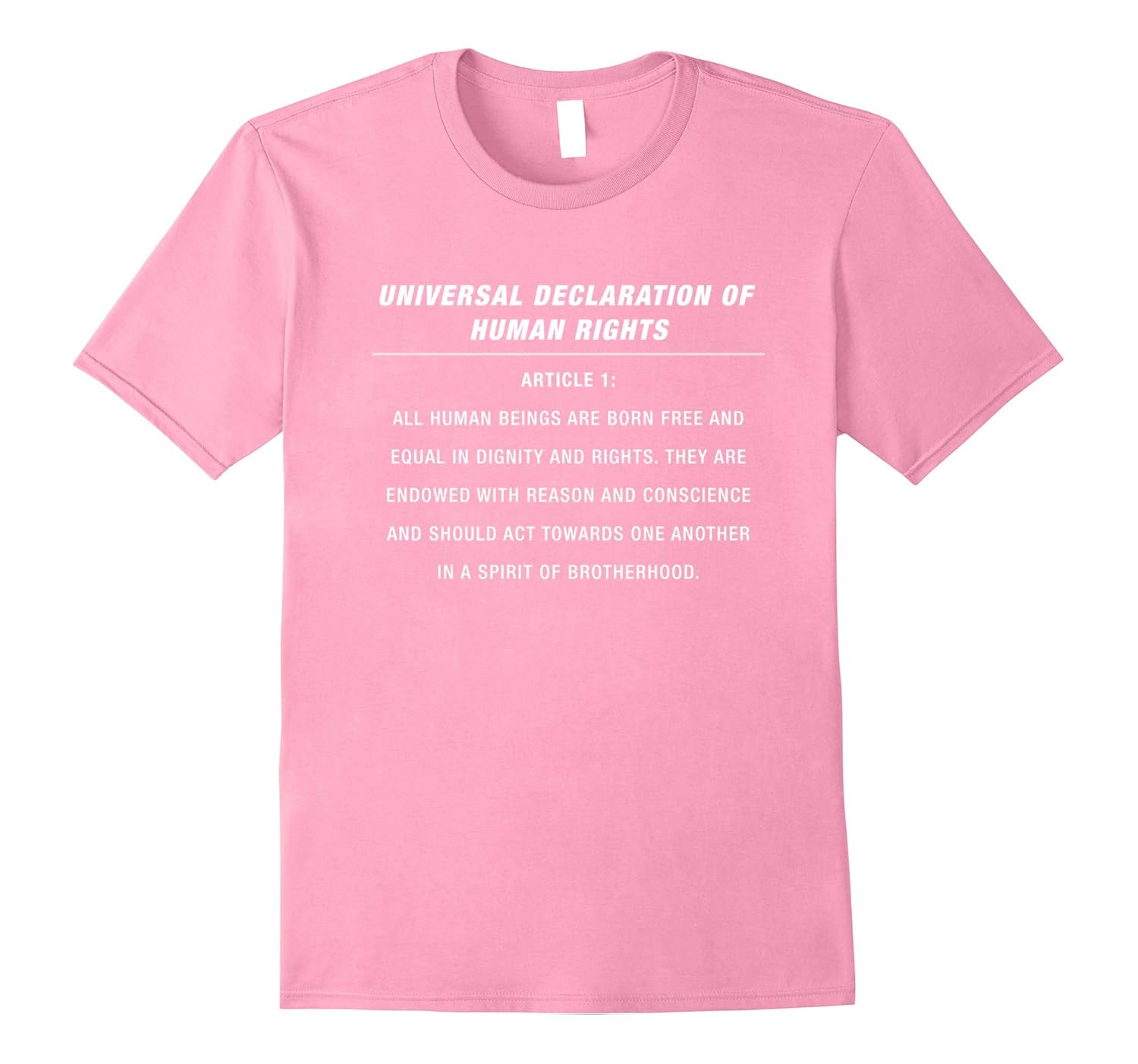 Solid colors: 100% Cotton; Heather Grey: 90% Cotton, 10% Polyester; All Other Heathers: 65% Cotton, 35% Polyester, Imported, Machine wash cold with like colors, dry low heat, This Political Protest Shirt Features Article 1 of the declaration of Human Rights. It”s perfect for protest rally, black lives matter movement, womens rights, equality and human kindness is everything advocates. Get your Political Shirt to go with political patches and political buttons. Order now in various colors. Lightweight, Classic fit, Double-needle sleeve and bottom hem