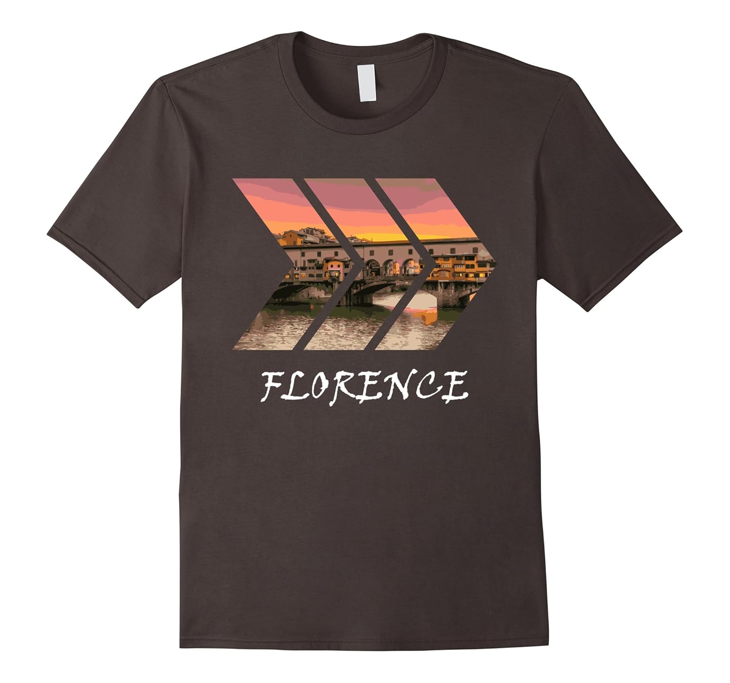 Solid colors: 100% Cotton; Heather Grey: 90% Cotton, 10% Polyester; All Other Heathers: 65% Cotton, 35% Polyester, Imported, Machine wash cold with like colors, dry low heat, Unique gift t-shirt of the amazing Ponte Vecchio Arch Bridge in Florence, Italy. This amazing arch bridge on the Arno River is a site to see and must visit if you are travelling to Florence, Italy and Europe. Great gift t-shirt for a Europe trip or tour. This is a unique and one of a kind gift idea for someone from Italy or Europe. Great idea for a gift to someone travelling abroad, a European backpacking trip, or someone who is into history, sightseeing, the Roman Empire and travel!, Lightweight, Classic fit, Double-needle sleeve and bottom hem