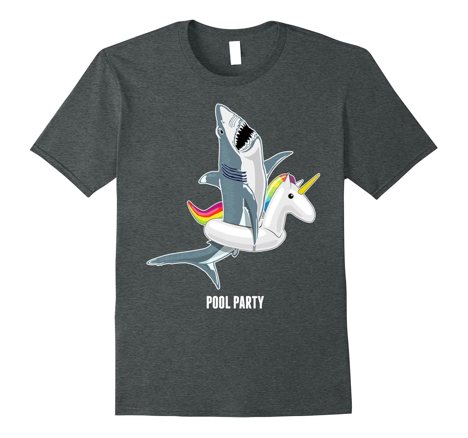 Solid colors: 100% Cotton; Heather Grey: 90% Cotton, 10% Polyester; All Other Heathers: 65% Cotton, 35% Polyester, Imported, Machine wash cold with like colors, dry low heat, This funny pool party shark t-shirt features an awesome styled shark graphic on a unicorn float and makes a perfect gift for men and women, or those looking for a funny summer t-shirt. Get your funny shark shirt today. This pool party unicorn float funny shark t-shirt for men or women makes a great gift for those that appreciate sharks. Add this funny shirt to your summer apparel and look great at the beach. Makes a great beach top or casual summer top. Lightweight, Classic fit, Double-needle sleeve and bottom hem