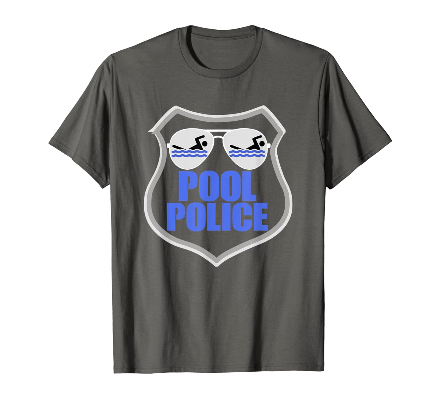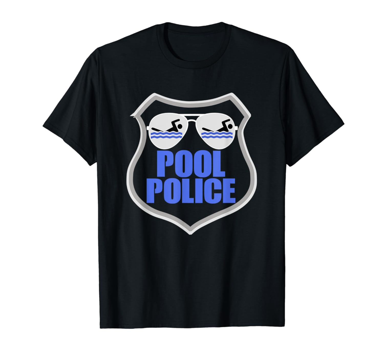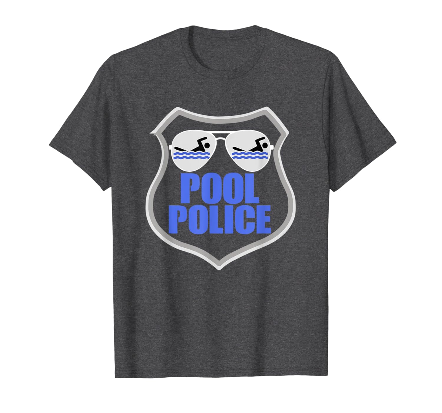 Solid colors: 100% Cotton; Heather Grey: 90% Cotton, 10% Polyester; All Other Heathers: 50% Cotton, 50% Polyester; Imported; Machine wash cold with like colors, dry low heat; Pool Police T Shirt featuring a Police badge with Cop sunglasses. Check out our brand for more Pool Police T Shirts!; This funny Lifeguarding TShirt makes a great Gift for that special lifeguard in your life that is the unofficial Pool Police!; Lightweight, Classic fit, Double-needle sleeve and bottom hem