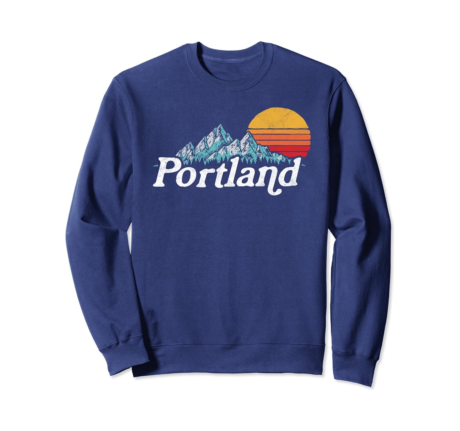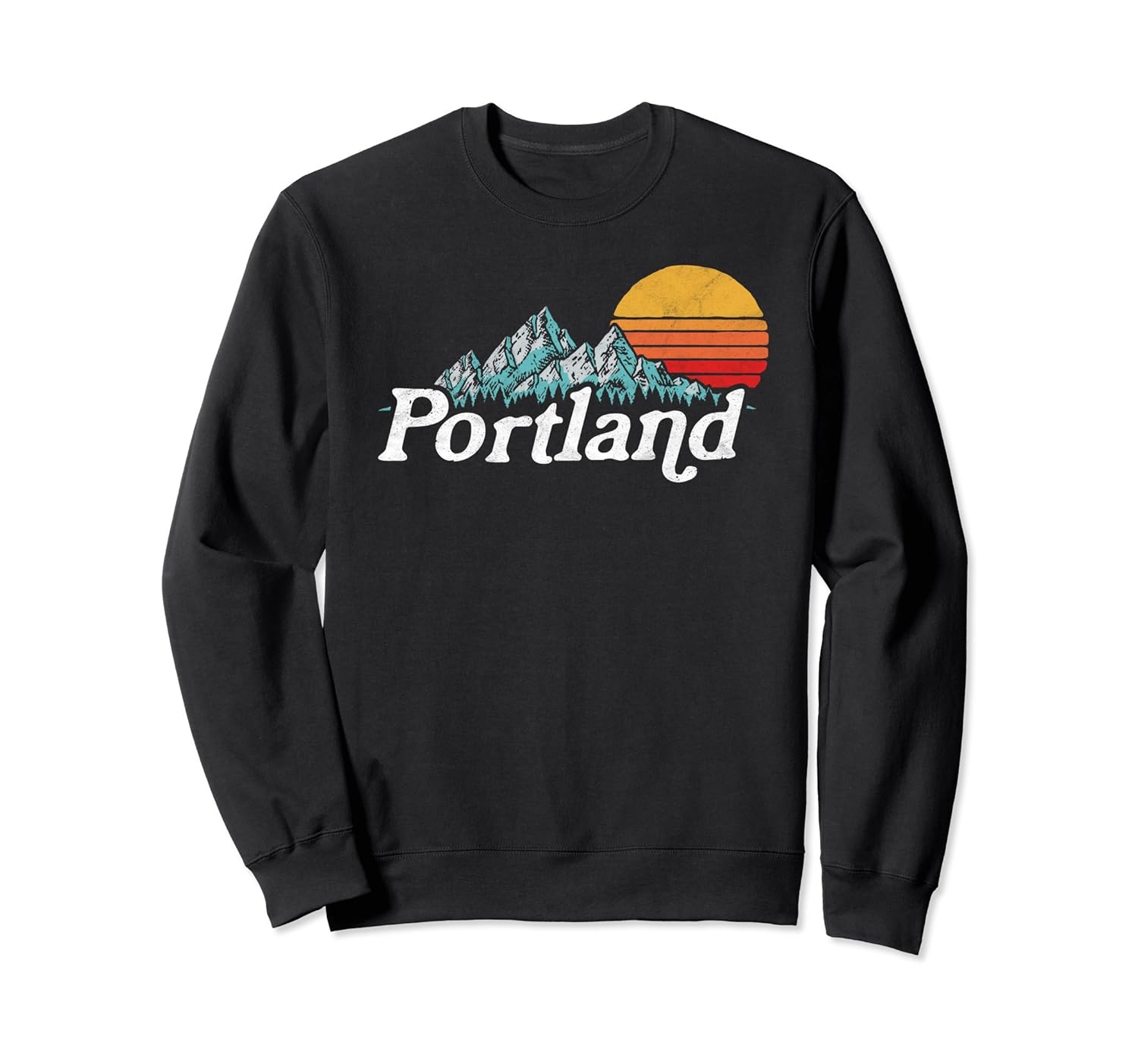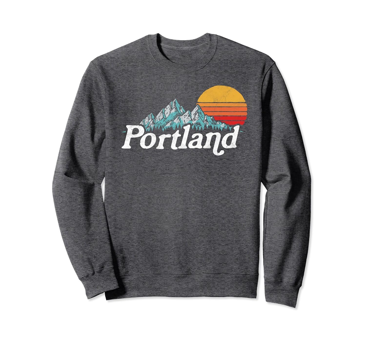Solid colors: 80% Cotton, 20% Polyester; Heather Grey: 78% Cotton, 22% Poly; Dark Heather: 50% Cotton, 50% Polyester; Imported; Machine wash cold with like colors, dry low heat; Portland Oregon Retro Outdoor Sweatshirt – Vintage Mountains Andamp; sun; 8.5 oz, Classic fit, Twill-taped neck