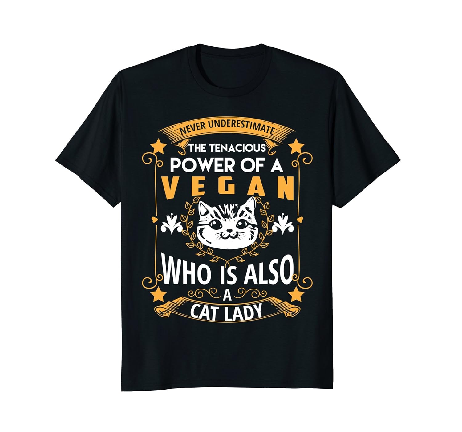 Solid colors: 100% Cotton; Heather Grey: 90% Cotton, 10% Polyester; All Other Heathers: 50% Cotton, 50% Polyester; Imported; Machine wash cold with like colors, dry low heat; This vegan tee shirt is designed to be fitted. For a more loose fit, please order a size up. Makes the PERFECT GIFT for that special someone in your life. Maybe a mom, wife, girlfriend, friend or co-worker. Great gift for Christmas, Birthday, Valentines Day, Fathers Day, Mothers Day, Couple Relationship Anniversary, Wedding, Graduation or ANY occasion!; This Power Of A Vegan Who Is Also A Cat Lady Vegan t-shirt is a great gift idea for people who love receiving vegan gifts like Dont Ask Me About My Protein Vegan T-Shirt, vegan recipes, shoes, chocolate, boots, slow cooker and vegan running shoes. You have to try wearing this quality top that is perfect for any vegan, vegetarian, organic farmer, organic restaurateur, organic chef, food scientist and organic agriculturist.; Lightweight, Classic fit, Double-needle sleeve and bottom hem