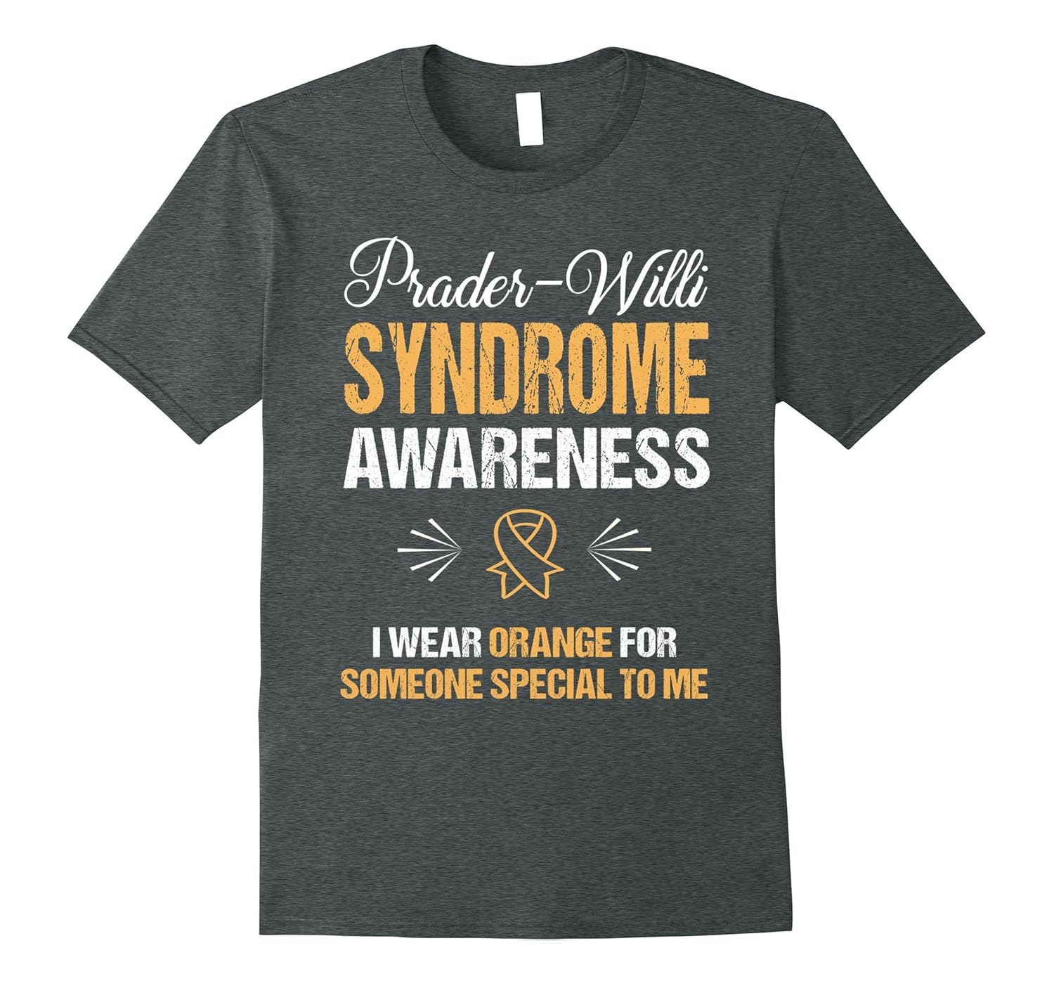 Solid colors: 100% Cotton; Heather Grey: 90% Cotton, 10% Polyester; All Other Heathers: 65% Cotton, 35% Polyester, Imported, Machine wash cold with like colors, dry low heat, PRADER-WILLI SYNDROME AWARENESS TSHIRT: I WEAR ORANGE FOR SOMEONE SPECIAL TO ME TSHIRT. Show love and support to a friend or family member living with Prader-Willi Syndrome by wearing this stylish Prader-Willi Syndrome Awareness Tee to bring them hope and encouragement. Lightweight, Classic fit, Double-needle sleeve and bottom hem