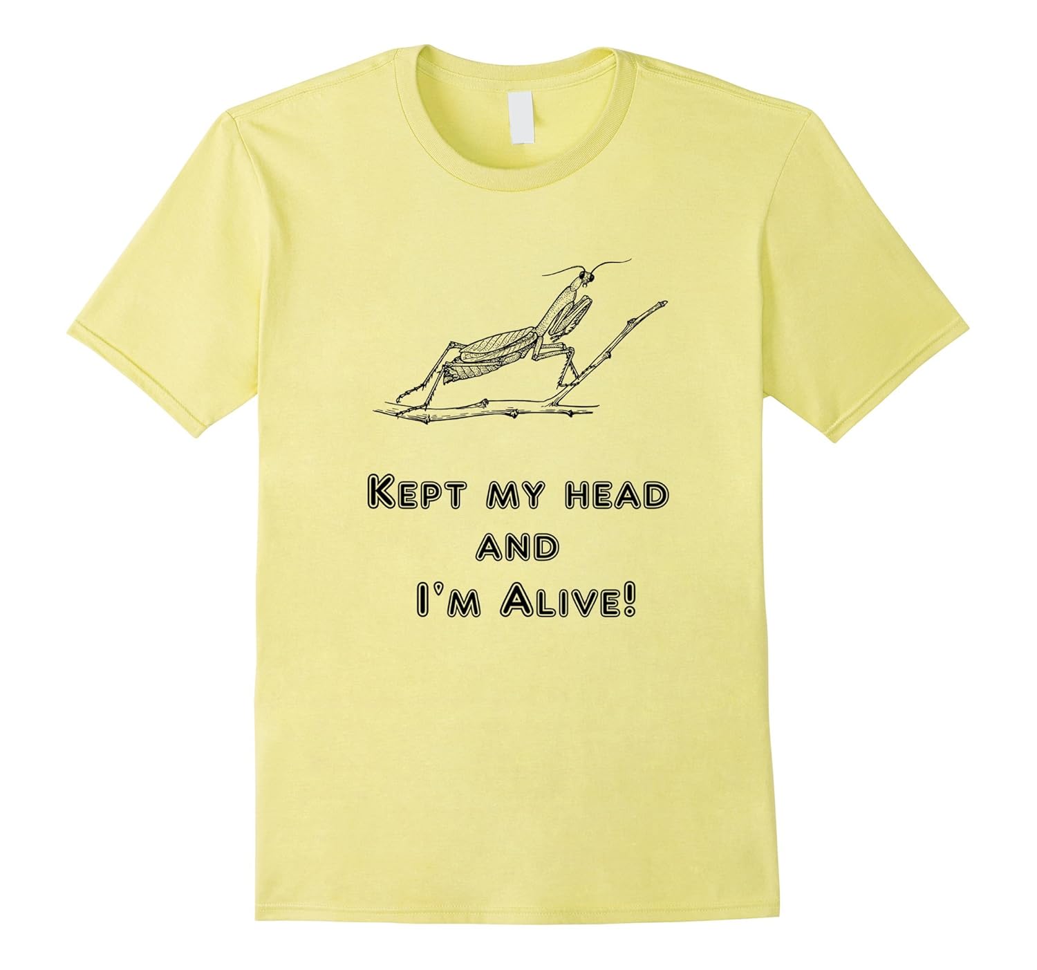 Solid colors: 100% Cotton; Heather Grey: 90% Cotton, 10% Polyester; All Other Heathers: 65% Cotton, 35% Polyester, Imported, Machine wash cold with like colors, dry low heat, Being a male praying mantis is tough work! You might get eaten when trying to start a family! Yike!, Gotta keep cool and keep my head on my shoulders! Great gift tee shirt for the bug lovers! Entomologist will like this shirt! So will those in the know!, Lightweight, Classic fit, Double-needle sleeve and bottom hem