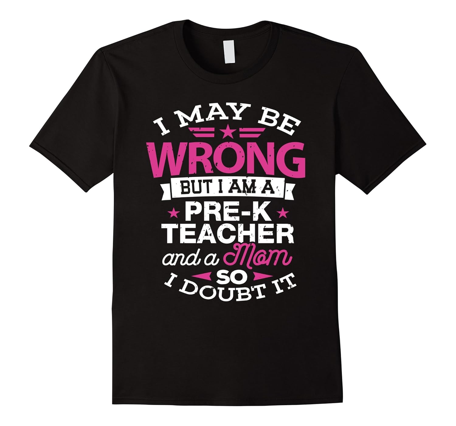 Solid colors: 100% Cotton; Heather Grey: 90% Cotton, 10% Polyester; All Other Heathers: 65% Cotton, 35% Polyester; Imported; Machine wash cold with like colors, dry low heat; Pre-K Teacher T-Shirt, I May Be Wrong But Im A Pre-K Teacher and a Mom So I Doubt It Shirt. Makes a great shirt for any Mom, Mommy, Mama on a birthday, Mothers day T-Shirt.; Perfect tee shirt to gift to Pre-K Teacher. Pre-K Teacher Mom Gifts.; Lightweight, Classic fit, Double-needle sleeve and bottom hem