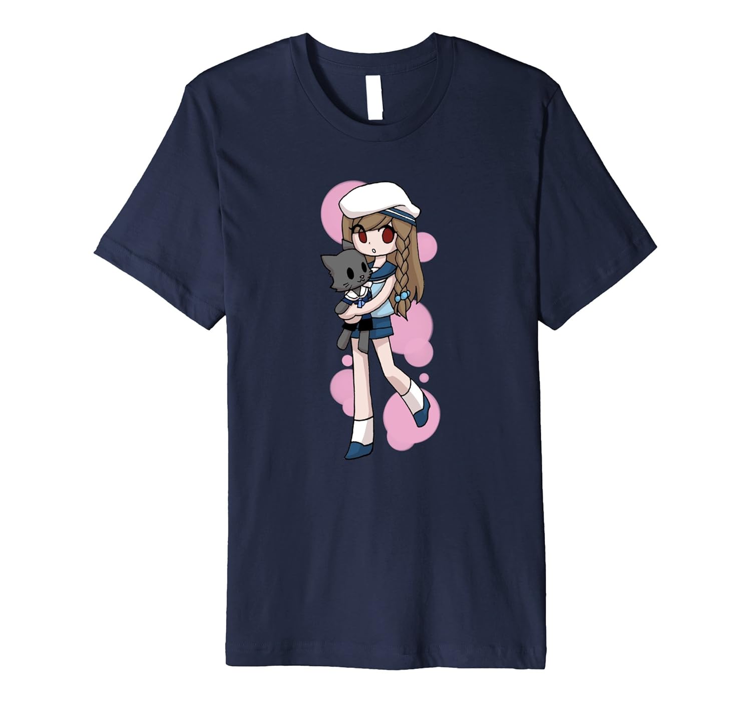 Solid colors: 100% Cotton; Heather Grey: 90% Cotton, 10% Polyester; All Other Heathers: 58% Cotton, 42% Polyester; Imported; Machine wash cold with like colors, dry low heat; Sailor GirlAndamp;Cat in dark colors is the 3rd design to our ORIGINAL, PREMIUM Christmas anime edition featuring our sailor girl Andamp; her pet cat made by our anime fan artist. A great shirt to wear or gift to fellow anime fans for Christmas or birthdays.; Fit: Slim (consider ordering a larger size for a looser fit); This design is available in kids and adult sizes. For adults, please order 2 sizes larger for a more comfy, baggy shirt. Wash cold. For other design and color options, click on the brand name above: Premium Christmas Tshirt Best Anime.; This premium t-shirt is made of lightweight fine jersey fabric