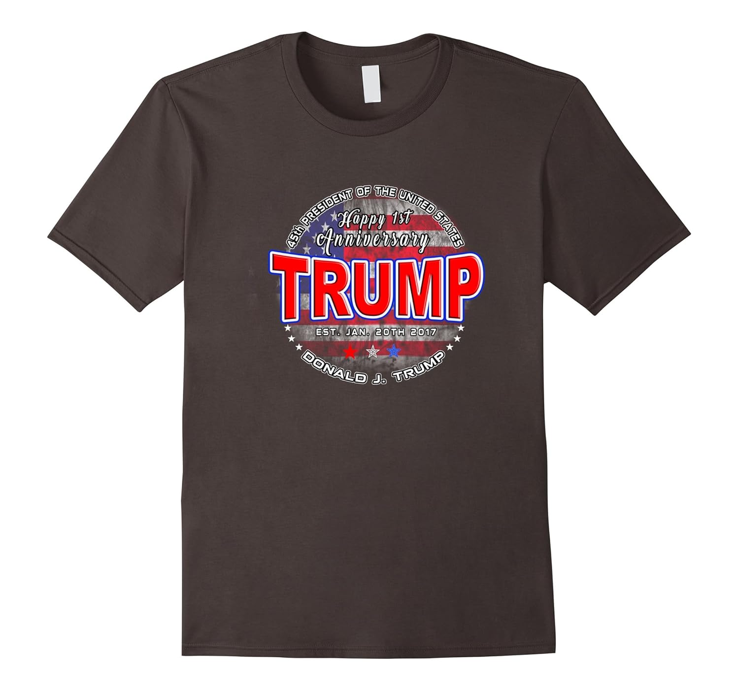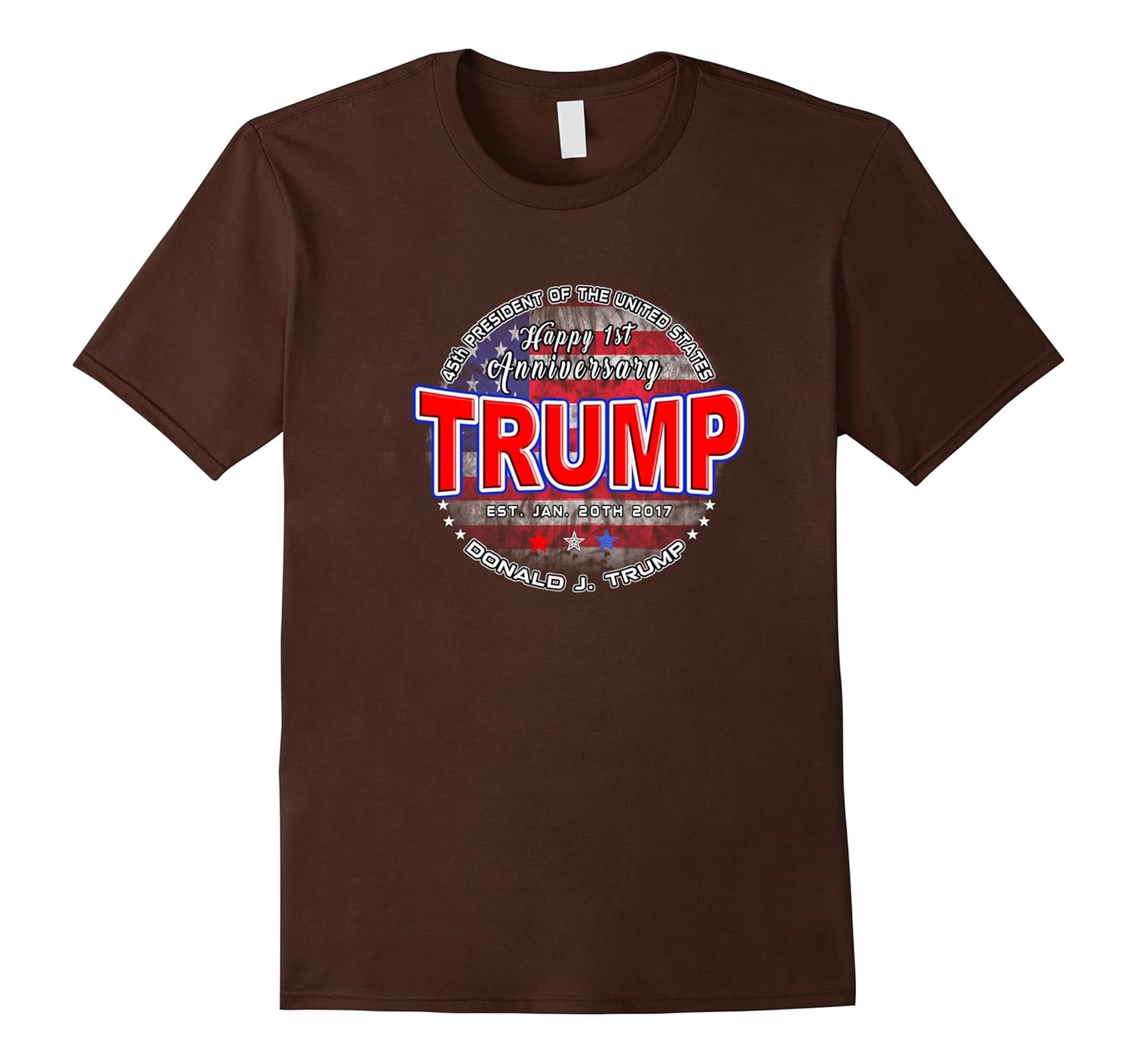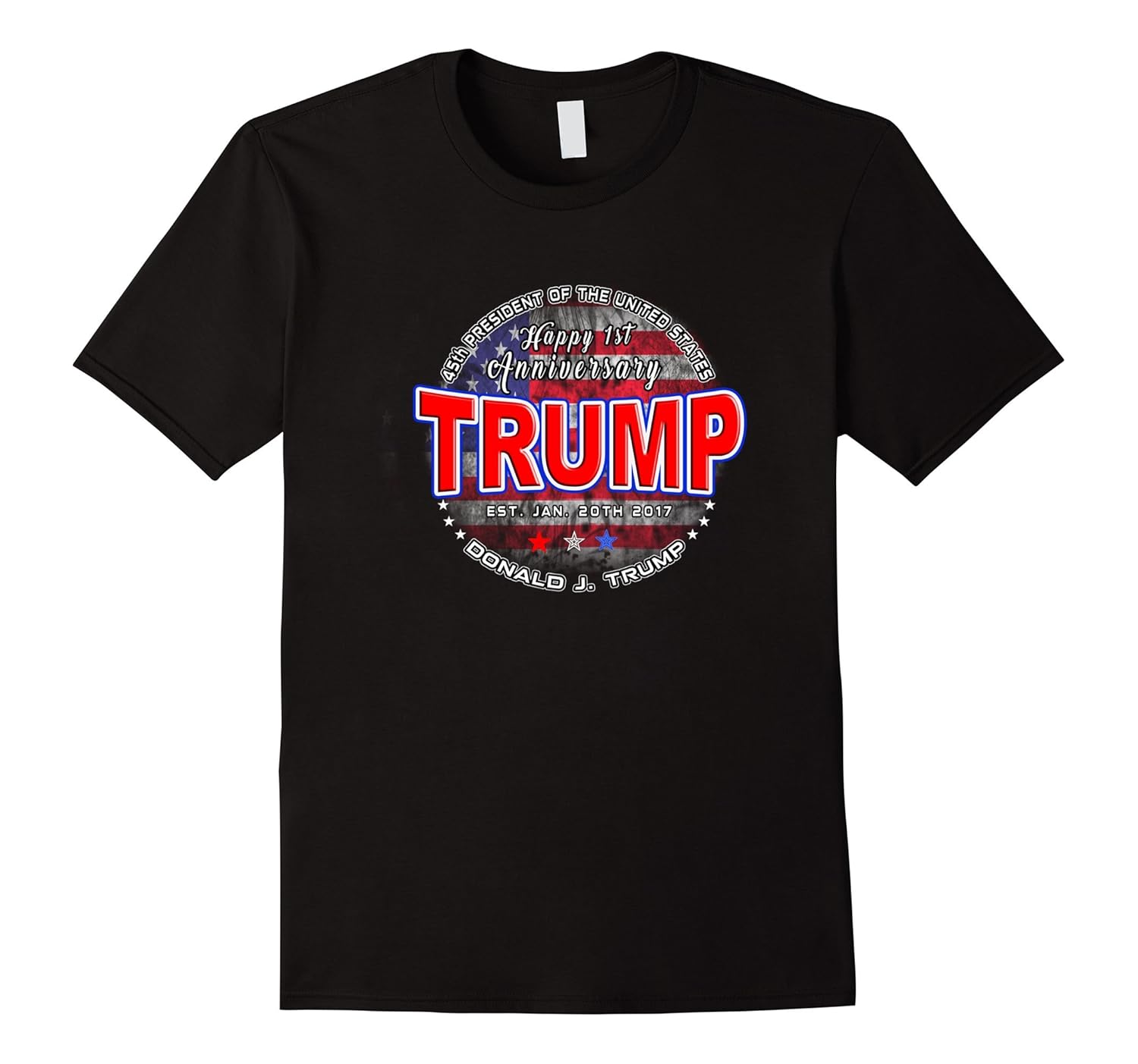 Solid colors: 100% Cotton; Heather Grey: 90% Cotton, 10% Polyester; All Other Heathers: 65% Cotton, 35% Polyester, Imported, Machine wash cold with like colors, dry low heat, Bring in the 45th President of the United States of America”s anniversary with this commemorative tee shirt which features the red white and blue colors of the US flag and stars. Wear as a patriotic symbol of being an American patriot of the USA, Makes great gift ideas for Christmas and birthday celebrations and online black Friday shopping for men, women, teens and children (kids) Nice for memorabilia and keepsakes to wear for the 2020 re elections, Lightweight, Classic fit, Double-needle sleeve and bottom hem