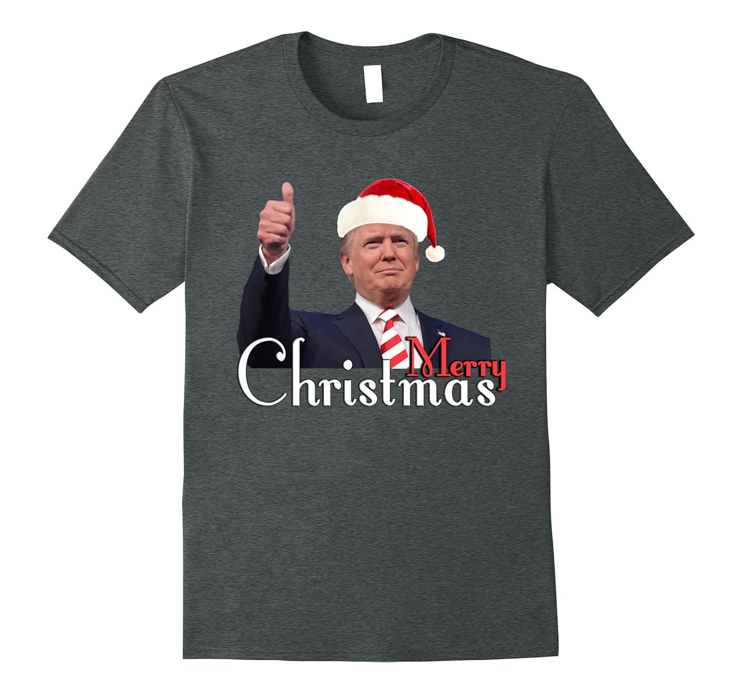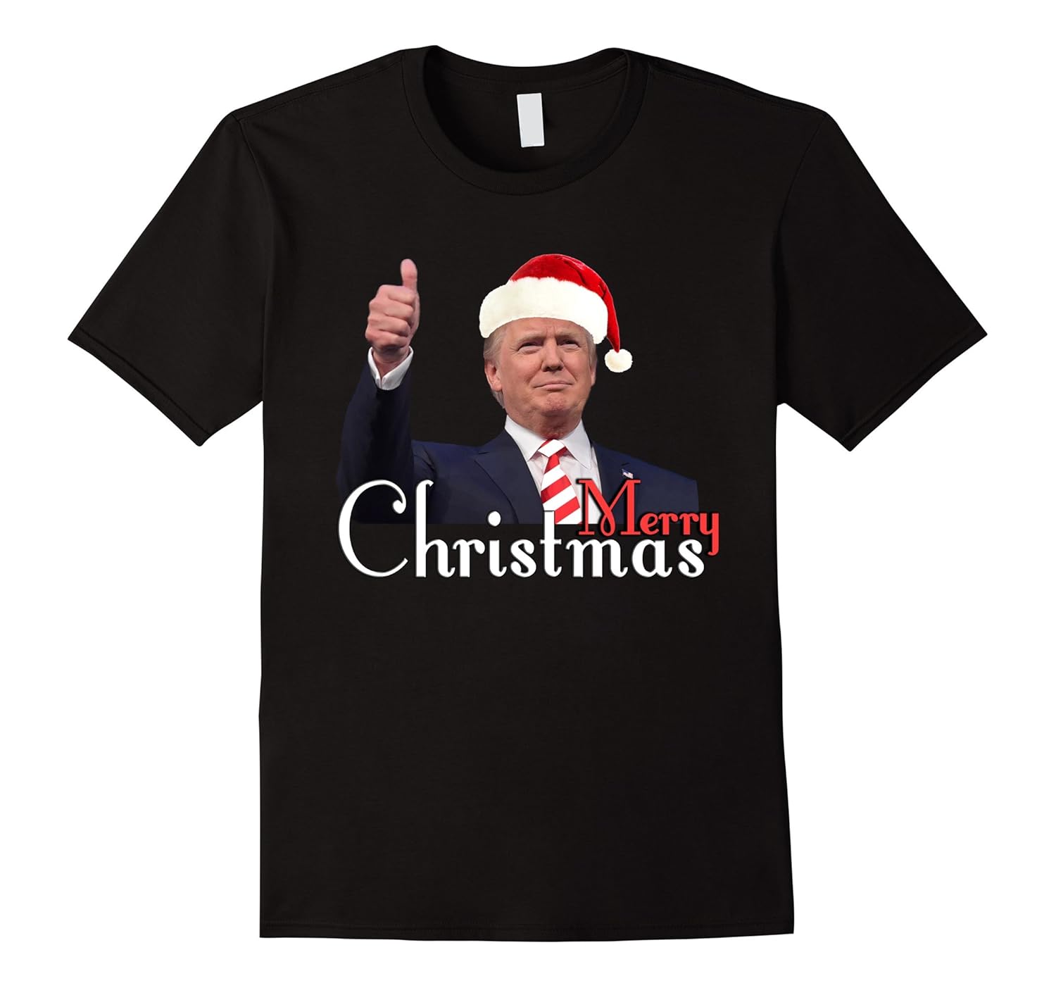 Solid colors: 100% Cotton; Heather Grey: 90% Cotton, 10% Polyester; All Other Heathers: 65% Cotton, 35% Polyester; Imported; Machine wash cold with like colors, dry low heat; Merry Christmas trump t shirt. This is a holiday design for President Donald Trump. His hand thumbs up gesture and a smiling face.; The Design contains red and white Candy stripes pattern tie, Christmas Santa Claus hat and a beautiful font Merry Christmas. Christmas is going to be great again. show Support to the president through this design.; Lightweight, Classic fit, Double-needle sleeve and bottom hem