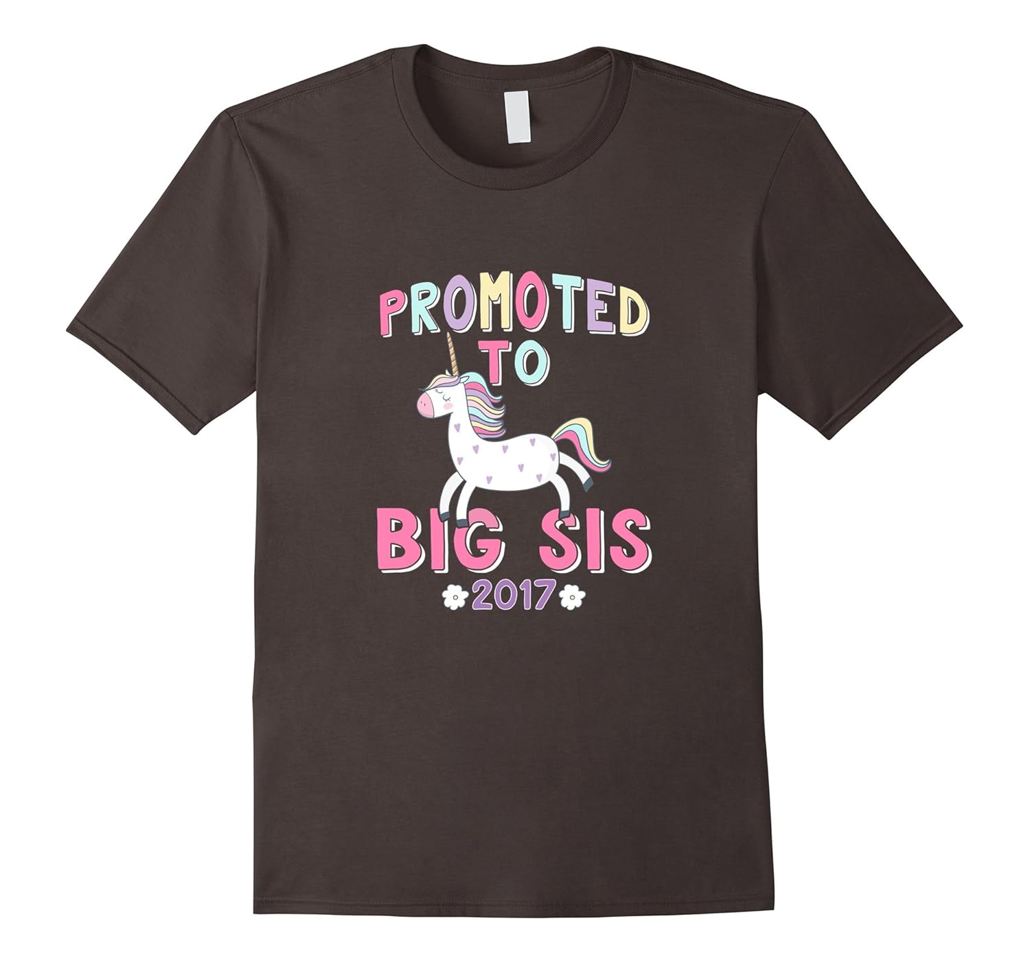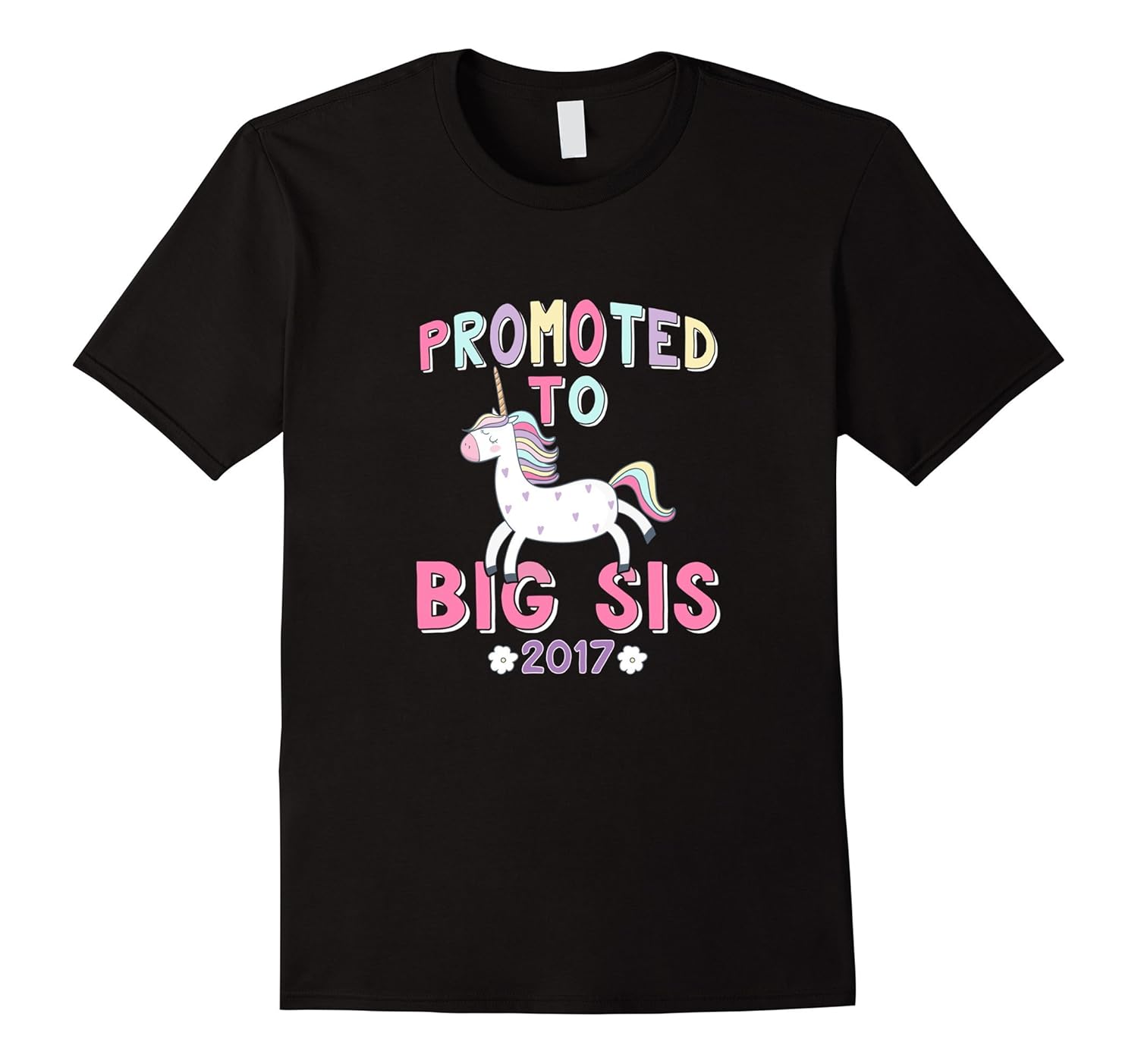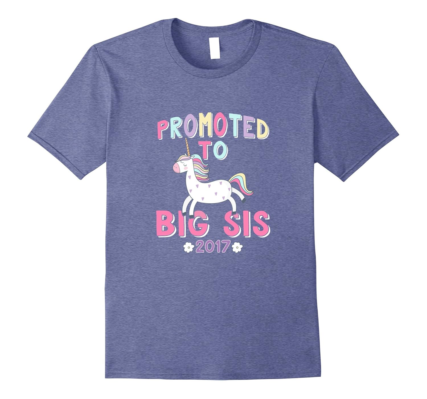 Solid colors: 100% Cotton; Heather Grey: 90% Cotton, 10% Polyester; All Other Heathers: 65% Cotton, 35% Polyester, Imported, Machine wash cold with like colors, dry low heat, Promoted to Big Sis 2017 t-shirt features a rainbow unicorn. Makes a great gift for someone who is expecting to be a new big sister. Great gift for your daughter, niece or cousin. Do you know someone expecting a new sister or a baby brother in 2017, then grab this tshirt. Also makes a perfect baby shower gift for new moms or for baby reveal announcement party. Lightweight, Classic fit, Double-needle sleeve and bottom hem