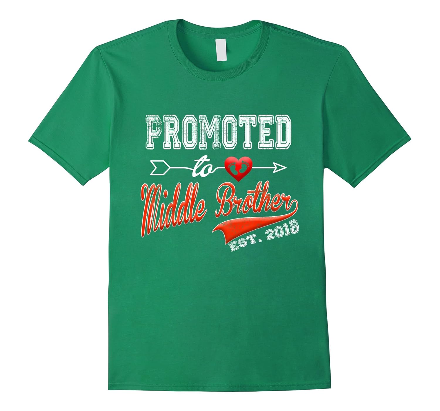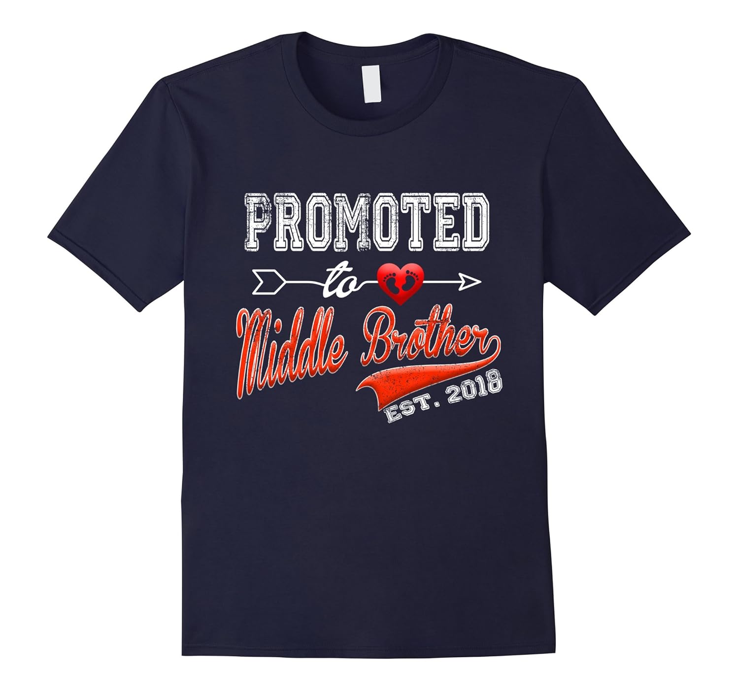Solid colors: 100% Cotton; Heather Grey: 90% Cotton, 10% Polyester; All Other Heathers: 65% Cotton, 35% Polyester, Imported, Machine wash cold with like colors, dry low heat, Promoted To Middle Brother shirt, promoted To Middle Brother est 2018, promoted to Middle Brother again, Middle Brother established 2018, promoted to Middle Brother established 2018, Lightweight, Classic fit, Double-needle sleeve and bottom hem