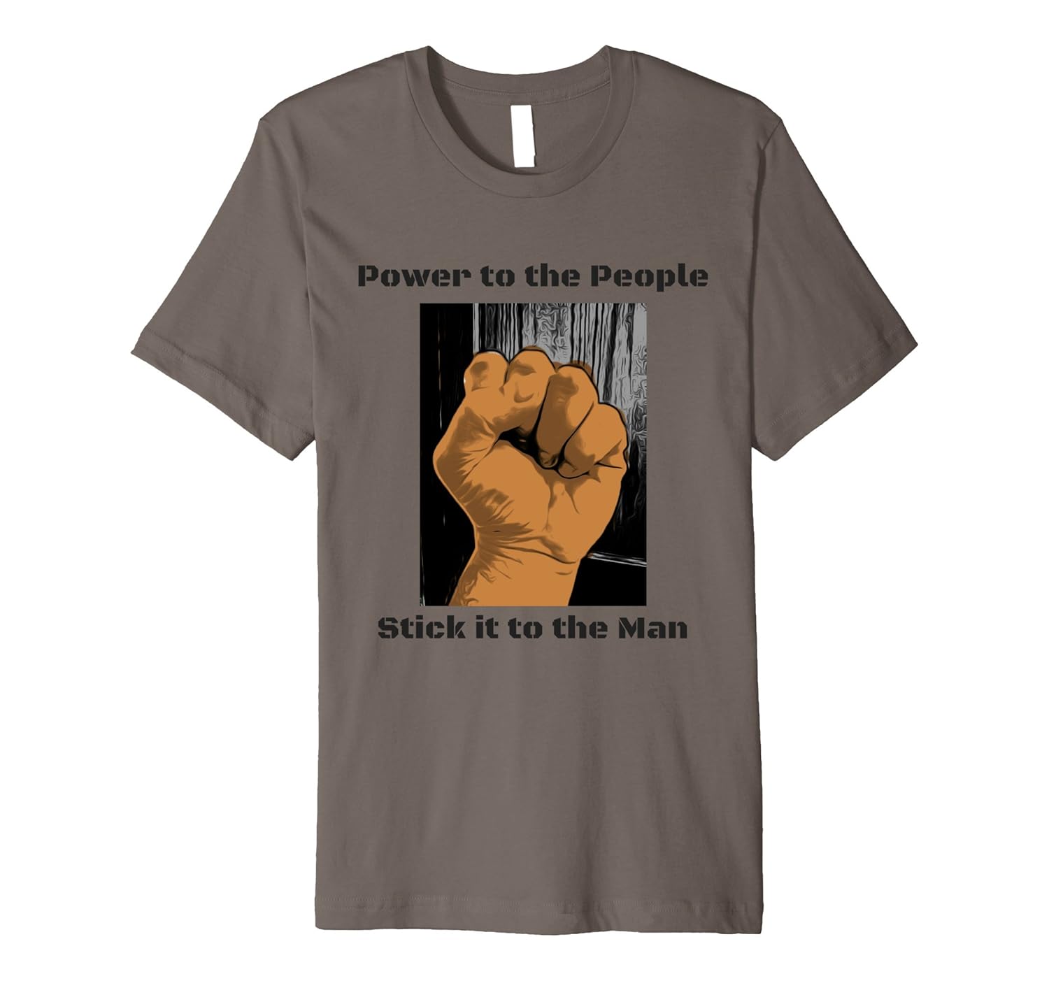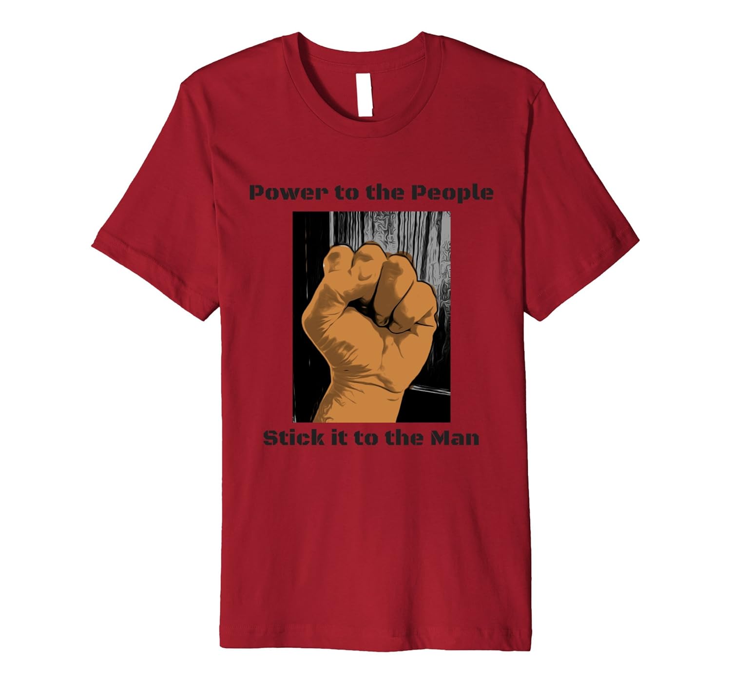 Solid colors: 100% Cotton; Heather Grey: 90% Cotton, 10% Polyester; All Other Heathers: 58% Cotton, 42% Polyester; Imported; Machine wash cold with like colors, dry low heat; Tough times have inflamed anti government anger because people want more control over their lives. Having control is having power. If you oppose trump or the current government, show your resistance while wearing this funny political tee shirt.; Fit: Slim (consider ordering a larger size for a looser fit); Power to the people, Stick it to the man tee shirt is designed for the person who loves the freedom they have in America to resist the president and leaders by wearing this shirt.; This premium t-shirt is made of lightweight fine jersey fabric