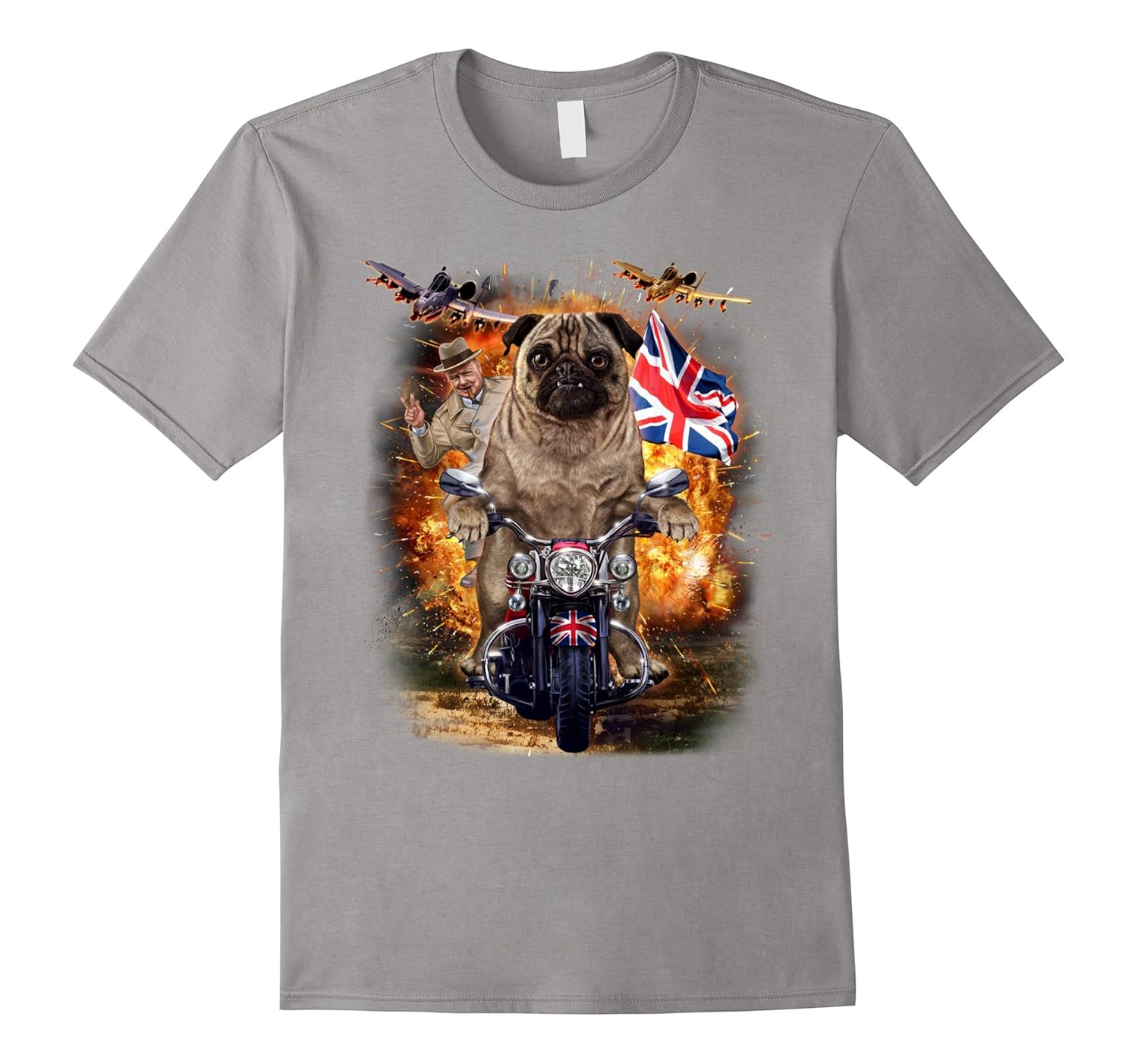 Pug Dog Ride Motorcycle with UK Winston Churchill T-Shirt-ANZ