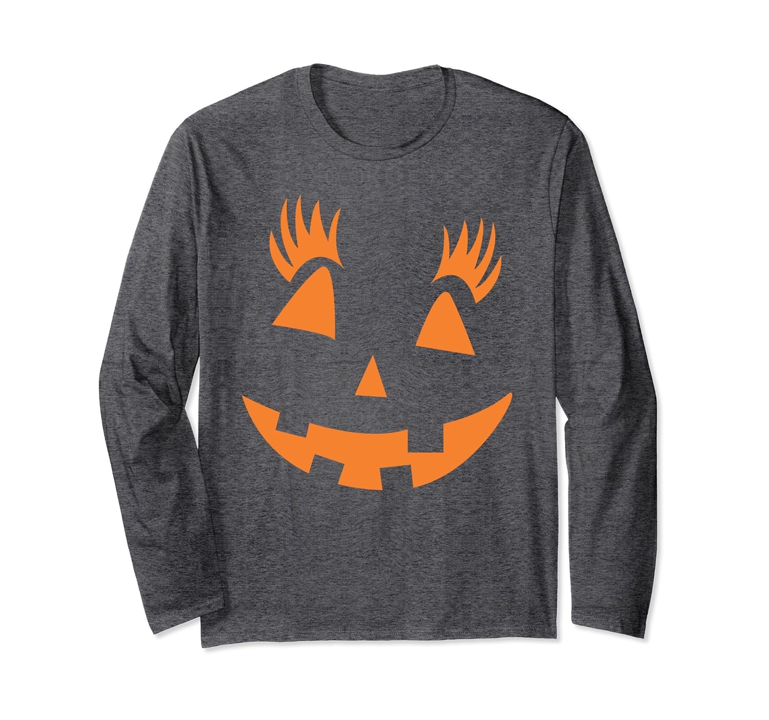 Solid colors: 100% Cotton; Heather Grey: 90% Cotton, 10% Polyester; All Other Heathers: 50% Cotton, 50% Polyester; Imported; Machine wash cold with like colors, dry low heat; This Cute Halloween Pumpkin party long sleeve tee is designed for teens: girls, boys and for adults: men, women, ladies; Let your personality stand out this Halloween with this beautiful and cute womens halloween emoji long sleeve shirt; get this long sleeve tee for yourself or as a gift for your friends, who love Halloween parties and carving pumpkins; Lightweight, Classic fit, Double-needle sleeve and bottom hem