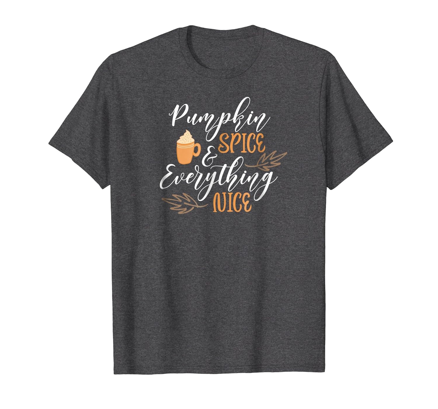 Solid colors: 100% Cotton; Heather Grey: 90% Cotton, 10% Polyester; All Other Heathers: 50% Cotton, 50% Polyester; Imported; Machine wash cold with like colors, dry low heat; Pumpkin Spice and Everything Nice! Fall is here and if youre a Pumpkin Spice Baby, this shirt is for you!; This Graphic Tee makes a great gift for anyone that loves Lattes, Hayrides, or Pumpkin Pie!; Lightweight, Classic fit, Double-needle sleeve and bottom hem