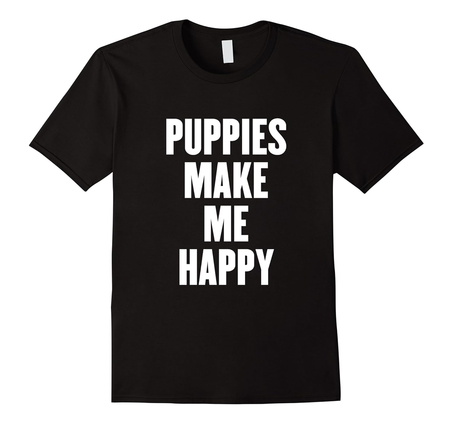 Solid colors: 100% Cotton; Heather Grey: 90% Cotton, 10% Polyester; All Other Heathers: 65% Cotton, 35% Polyester; Imported; Machine wash cold with like colors, dry low heat; Perfect gift for mom dad son daugher brother sister cousin uncle aunt grandmother grandfather.; puppies make me happy T-Shirts is designed and printed to be fitted. For a more loose fit, please order a size up and see the sizing chart image for more details.; Lightweight, Classic fit, Double-needle sleeve and bottom hem