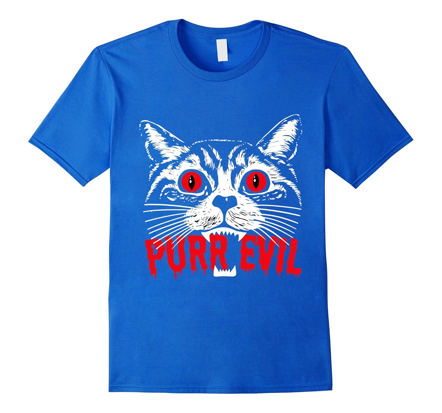 Solid colors: 100% Cotton; Heather Grey: 90% Cotton, 10% Polyester; All Other Heathers: 65% Cotton, 35% Polyester, Imported, Machine wash cold with like colors, dry low heat, An exclusive Cats TShirt. Great for Halloween fans, Adults and Cat Lovers!. Does your cat turn evil around halloween. This terrifying cat kitten shirt is definitely going to get a laugh this halloween. Great halloween gifts for treat bags. Happy Halloween!, Purr Evil T Shirt Is Designed and Printed in different sizes for Women and Men in various colors. Do you love Horror Halloween or scary stuff. If you love bloody gore, witches and demons, this awesome Satanic T-shirt with a black cat is perfect for you!, Lightweight, Classic fit, Double-needle sleeve and bottom hem