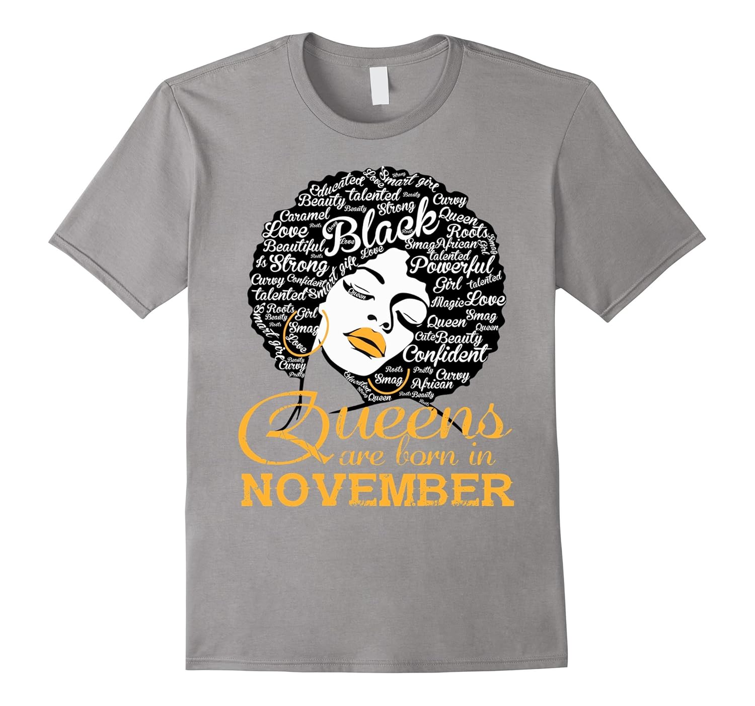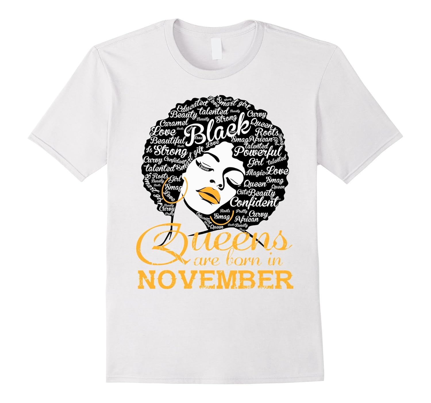 Solid colors: 100% Cotton; Heather Grey: 90% Cotton, 10% Polyester; All Other Heathers: 65% Cotton, 35% Polyester, Imported, Machine wash cold with like colors, dry low heat, Inspiring Tee shirt that depicts Black Power, Black Pride, African Heritage, African Pride and Heritage Matter. Perfect Gift For Black Women, Mom, Grandma, Aunt, Wife, Daughter Who are born in November. Also nice shirt for kids or little girls. African American woman with natural hair afro made up of words such as strong, black, confident, magic, educated, melanin, curvy, queen, Beauty, Smart, Swag, Cute…Great birthday, Mother”s Day gift idea for a proud black woman. Lightweight, Classic fit, Double-needle sleeve and bottom hem