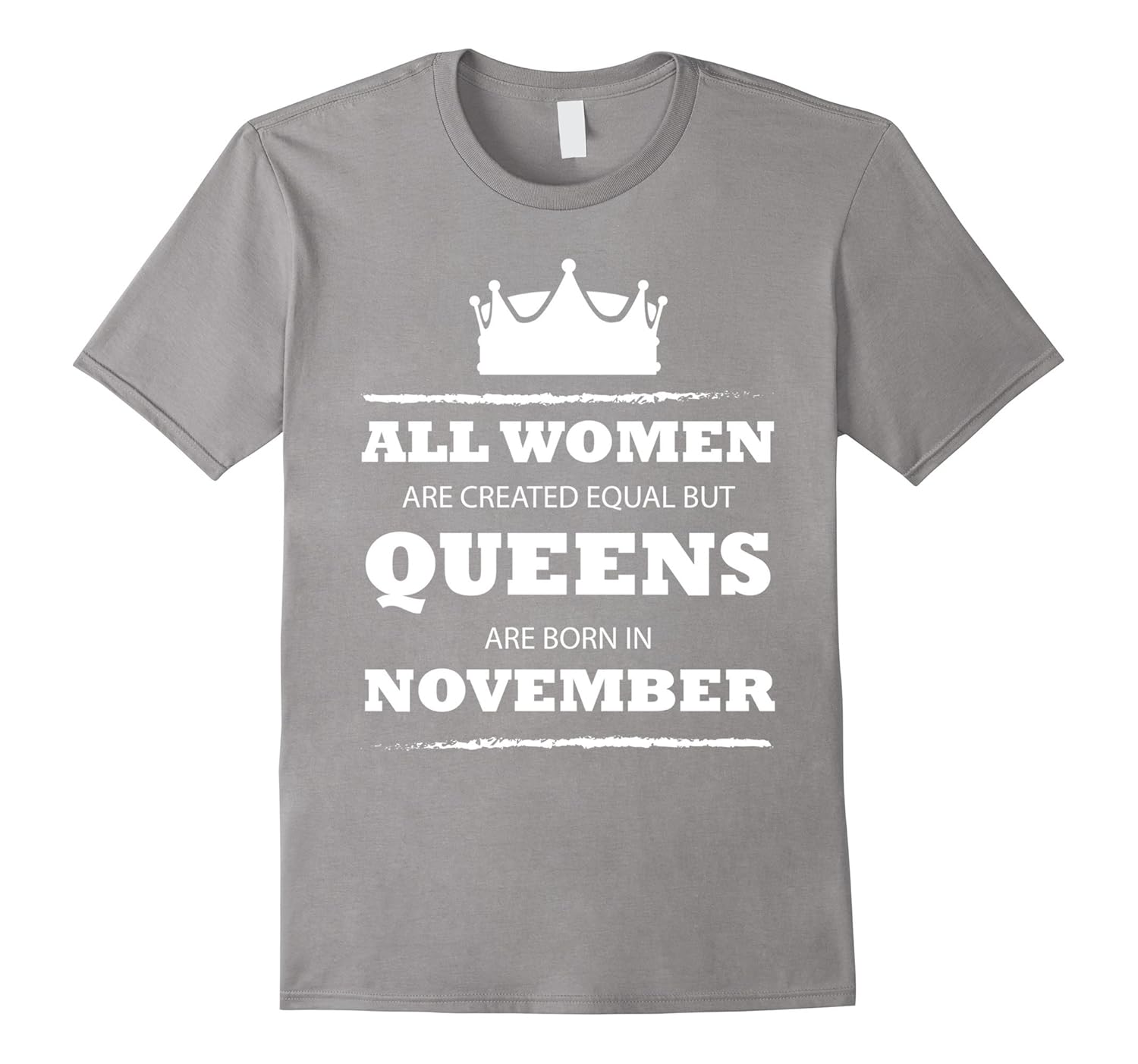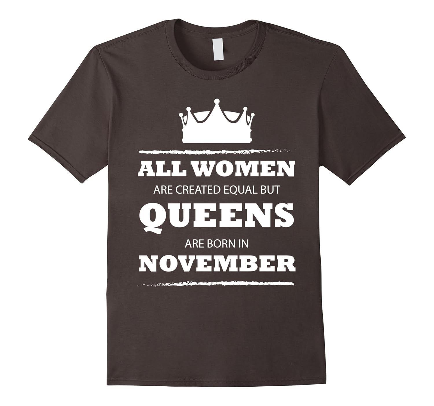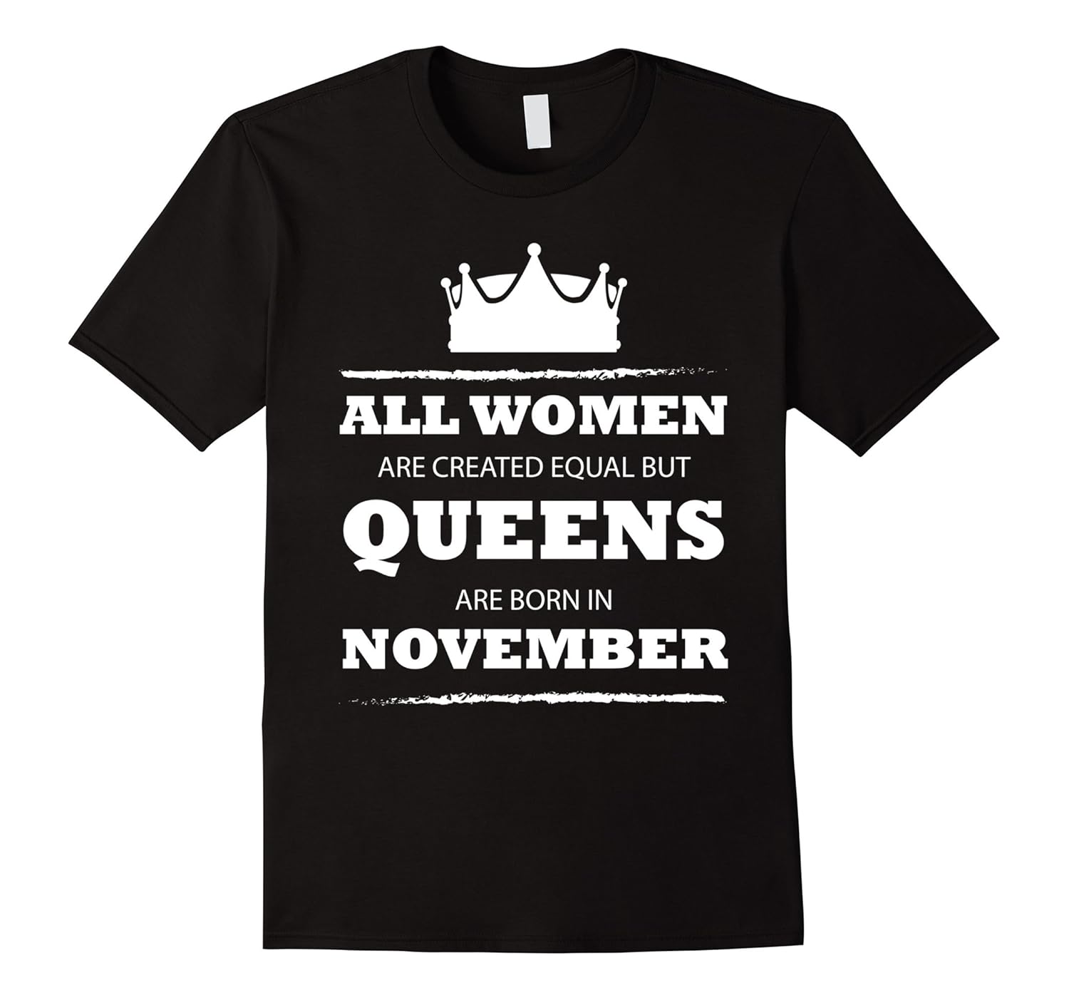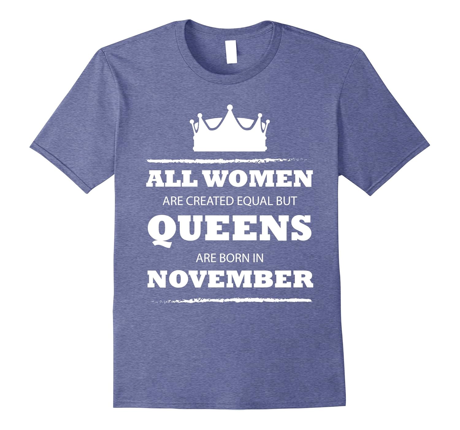 Solid colors: 100% Cotton; Heather Grey: 90% Cotton, 10% Polyester; All Other Heathers: 65% Cotton, 35% Polyester, Imported, Machine wash cold with like colors, dry low heat, If you are born in November, you know you are special, not only special, but so fabulous, you are a queen, as far as you are concerned. Then show off for all to see in this, funny Queens Are Born In November T-shirt. This, All Women Are Created Equal shirt, except for you darling, you were born a November queen, is the ultimate funny birthday tee! Perfect birthday or christmas gift. For a baggy fit order a size up. Lightweight, Classic fit, Double-needle sleeve and bottom hem