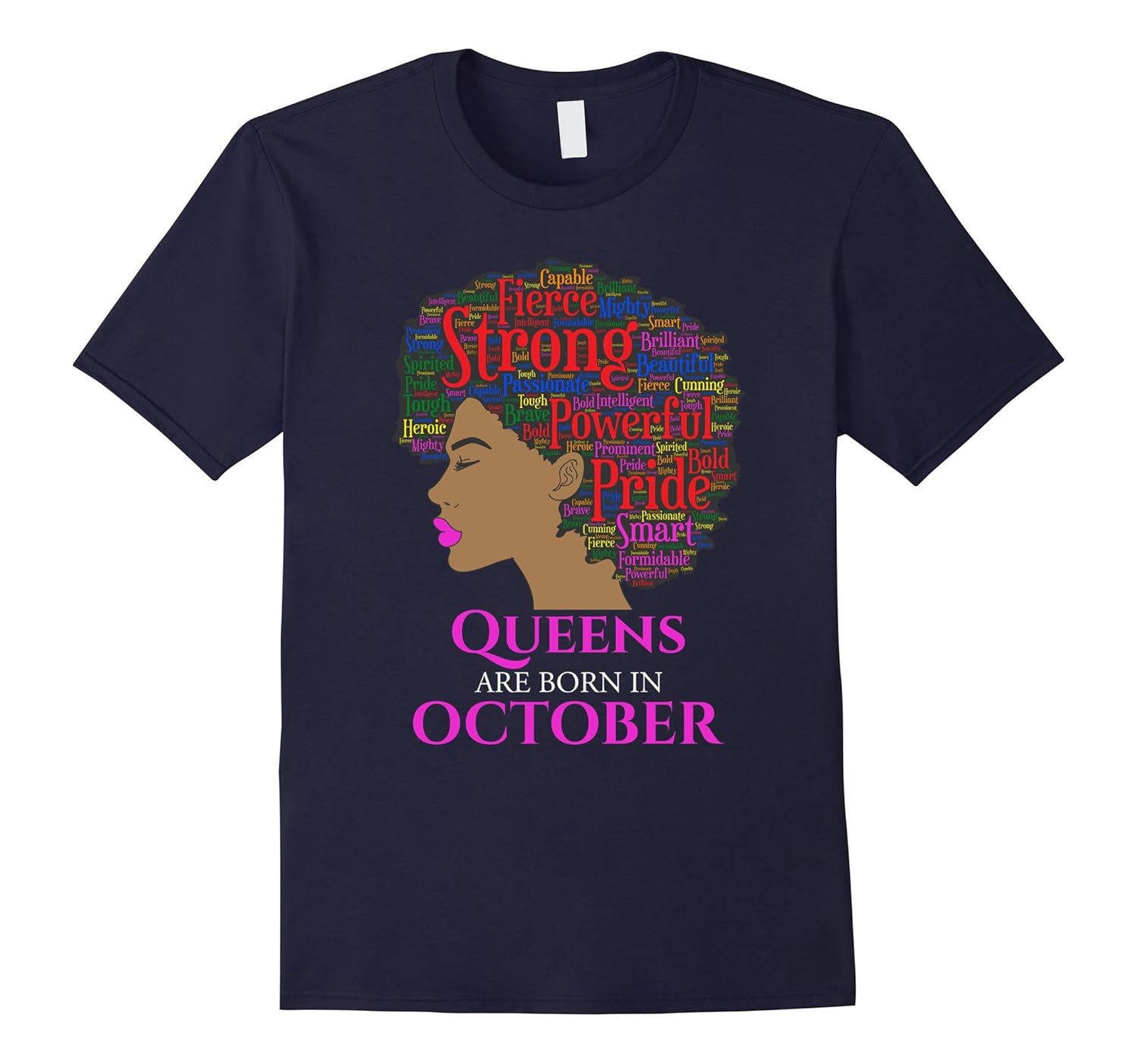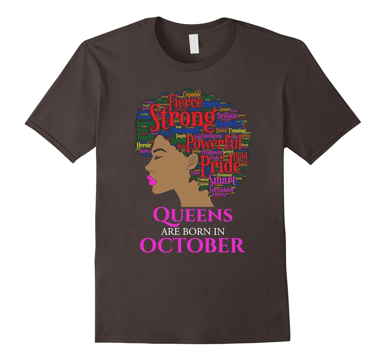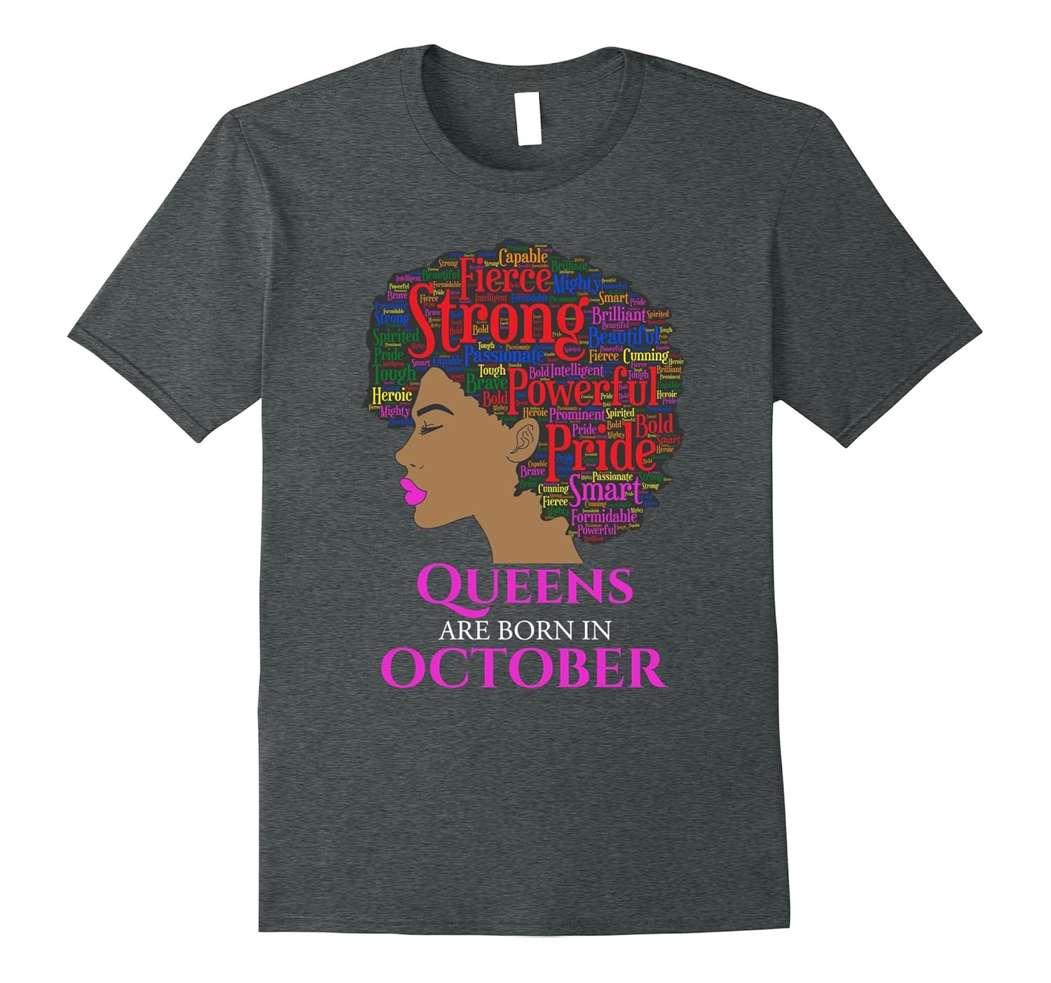 Solid colors: 100% Cotton; Heather Grey: 90% Cotton, 10% Polyester; All Other Heathers: 65% Cotton, 35% Polyester, Imported, Machine wash cold with like colors, dry low heat, This Queens Are Born In October Strong Black and Beautiful word art shirt is perfect for any proud Black Women. This great African American tee makes a great gift for your Mom, Grandma, Aunt, sister, daughter, or friends. This word art birthday gift apparel uses a natural Afro made from words to convey strength, unity, and power. This positive T-Shirt makes a great birthday or Christmas present for any powerful women. Lightweight, Classic fit, Double-needle sleeve and bottom hem