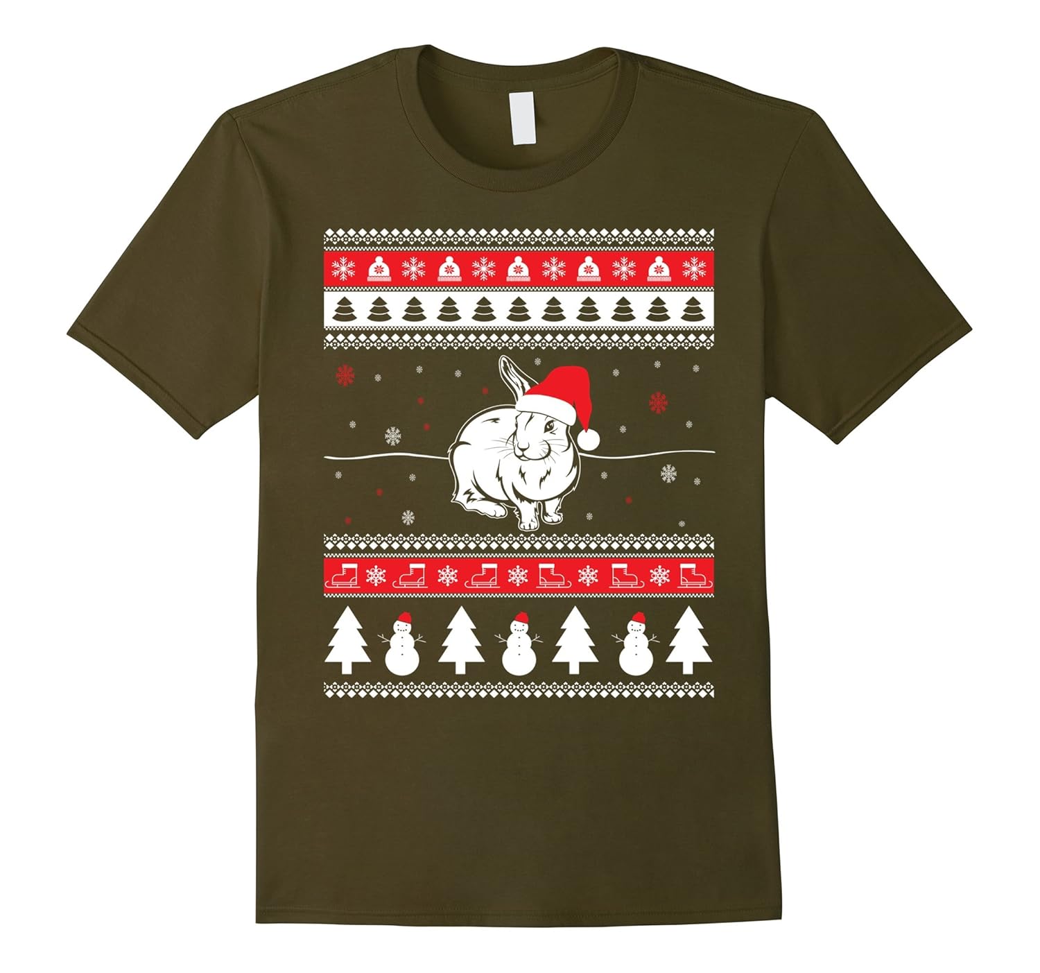 Solid colors: 100% Cotton; Heather Grey: 90% Cotton, 10% Polyester; All Other Heathers: 65% Cotton, 35% Polyester; Imported; Machine wash cold with like colors, dry low heat; Merry Christmas to all Rabbit owners and lovers! This is the perfect shirt for any Rabbit dad, mom, grandfather, grandmother, brother or sister who loves to spend time with his/her bunny.; Be a proud Rabbit lover and wear this funny and cute Rabbit Ugly Christmas tee to everywhere! It makes a great Christmas gift for friends or family.; Lightweight, Classic fit, Double-needle sleeve and bottom hem