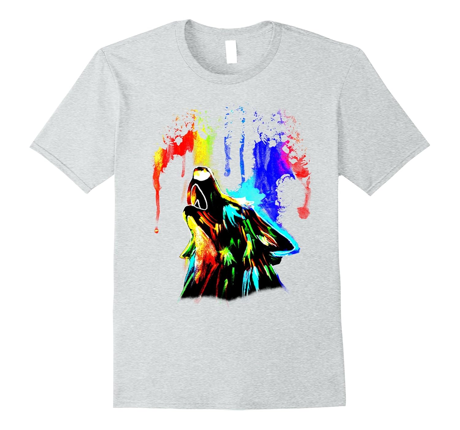 Rainbow Color Neon Light Sky Howling Wolf Drawing Cute Shirt-ANZ