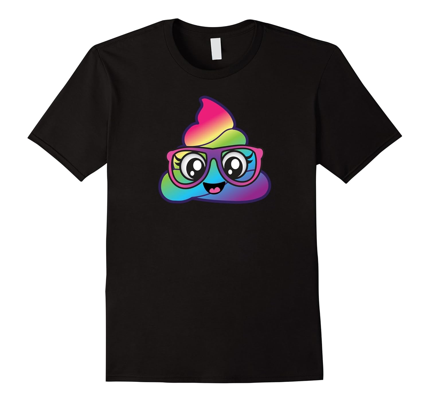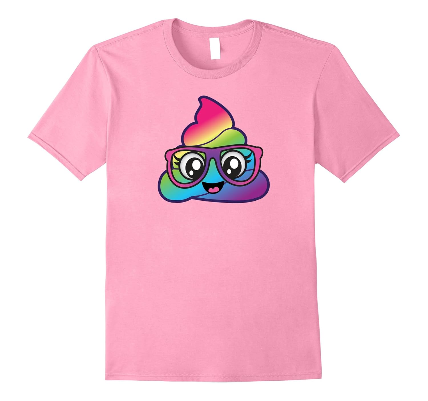 Rainbow Poop Emoji Nerdy Glasses Cute Pink Poo Emoji Shirt-ANZ