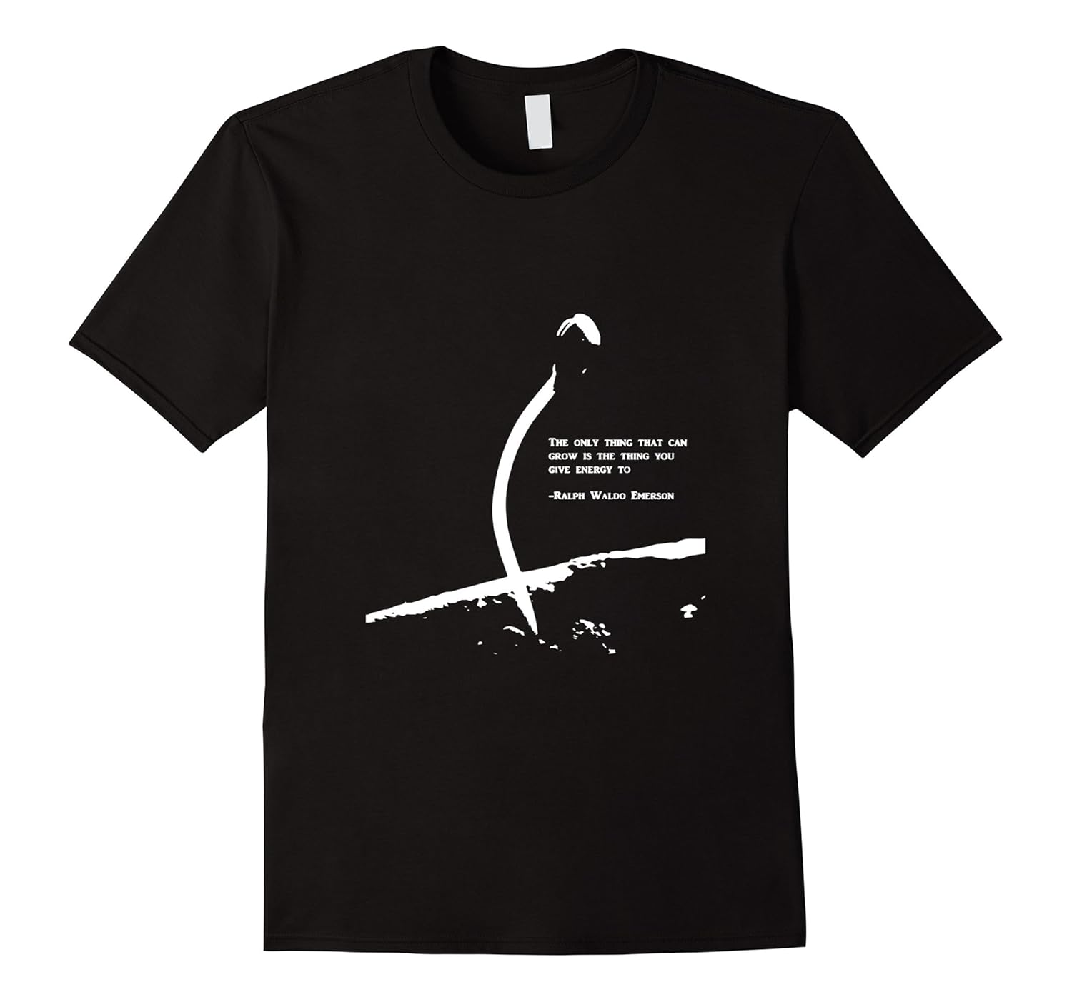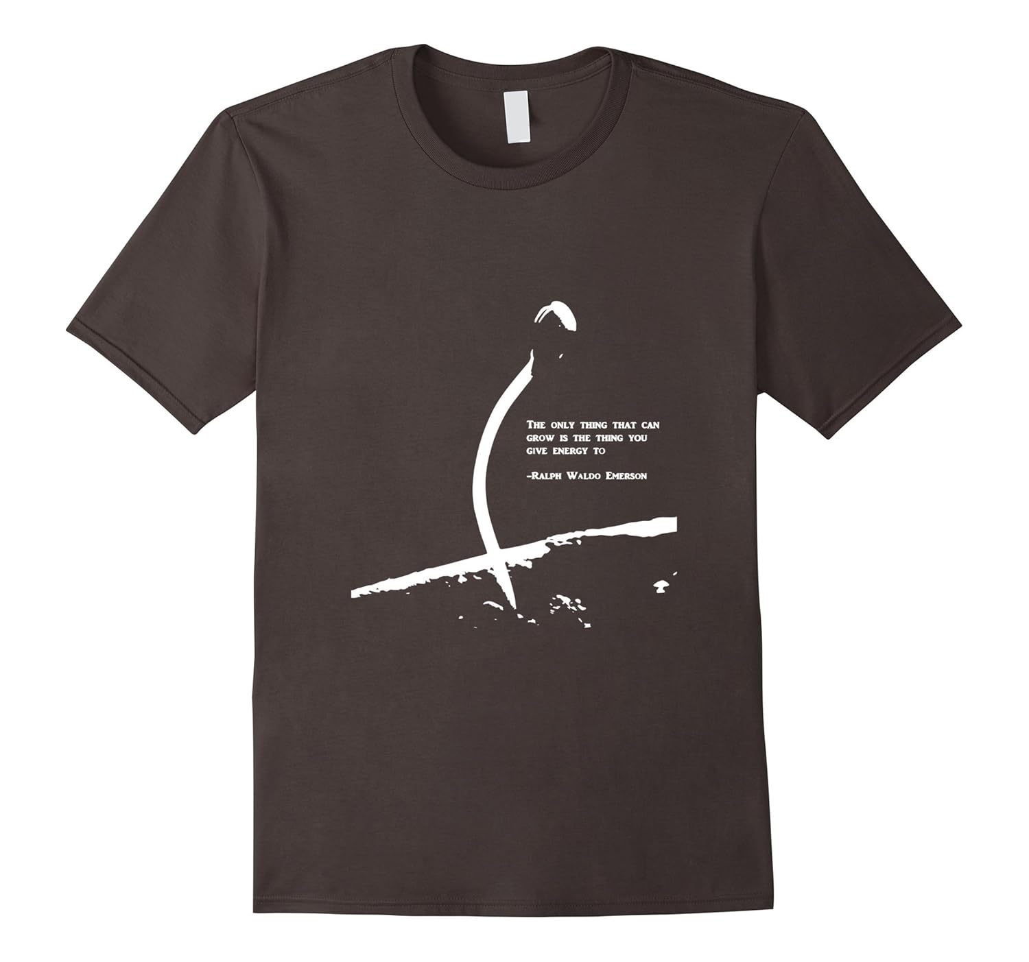 Solid colors: 100% Cotton; Heather Grey: 90% Cotton, 10% Polyester; All Other Heathers: 65% Cotton, 35% Polyester, Imported, Machine wash cold with like colors, dry low heat, The Only Thing That Can Grow Is The Thing You Give Energy To Quote by Ralph Waldo Emerson, Lightweight, Classic fit, Double-needle sleeve and bottom hem