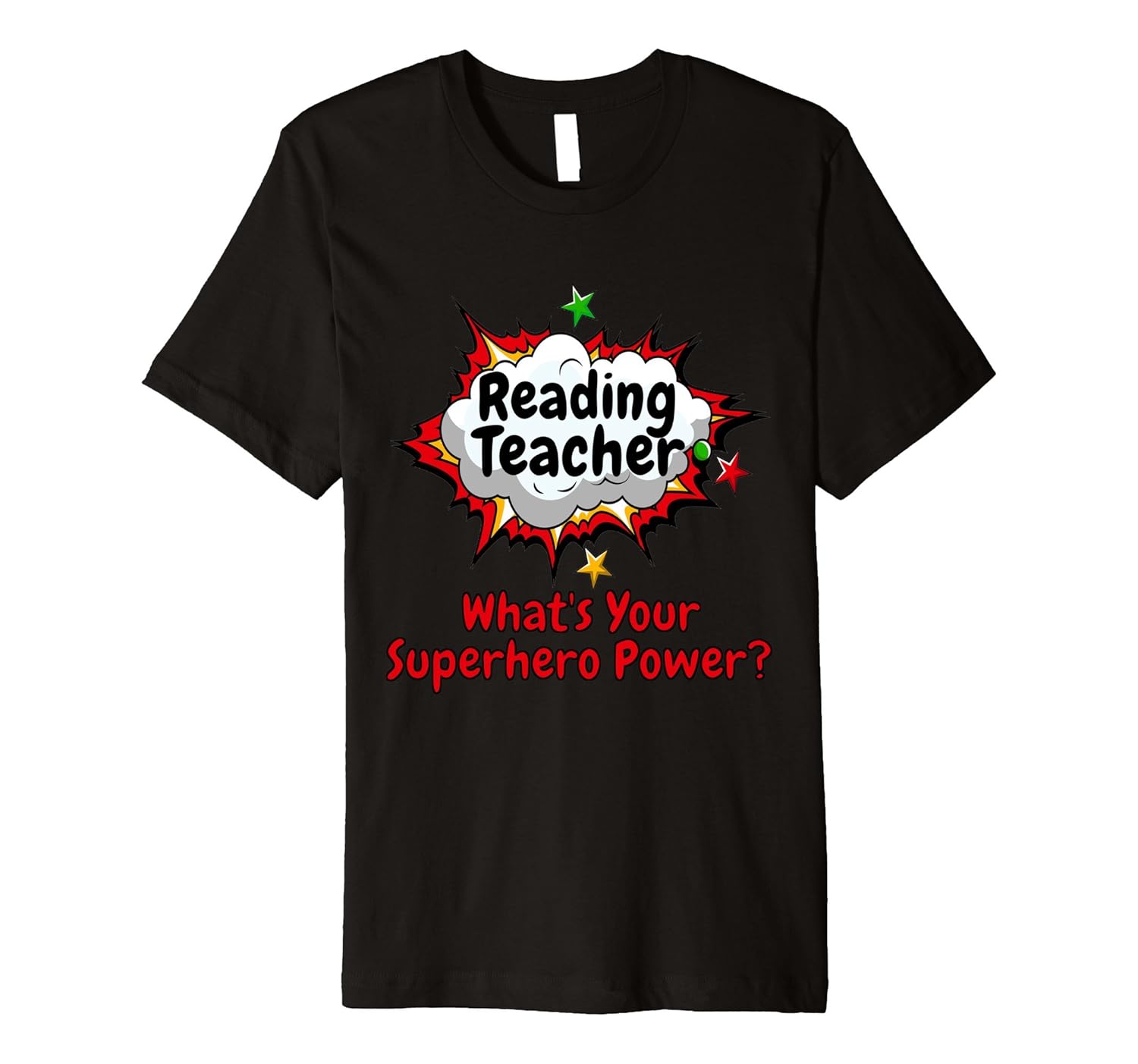 Solid colors: 100% Cotton; Heather Grey: 90% Cotton, 10% Polyester; All Other Heathers: 58% Cotton, 42% Polyester; Imported; Machine wash cold with like colors, dry low heat; Reading Teacher Whats Your Superhero Power? School Apparel Premium T-Shirt. Both male and female teachers will appreciate the comic style of this classic shirt. Perfect Happy Teachers Day gift. Teachers will love this shirt.; Fit: Slim (consider ordering a larger size for a looser fit); Excellent gift for the teacher in your childs life or your family and friends that teach. Perfect shirt for Teachers Appreciation Day. Makes a great graduation gift for the new teacher.; This premium t-shirt is made of lightweight fine jersey fabric