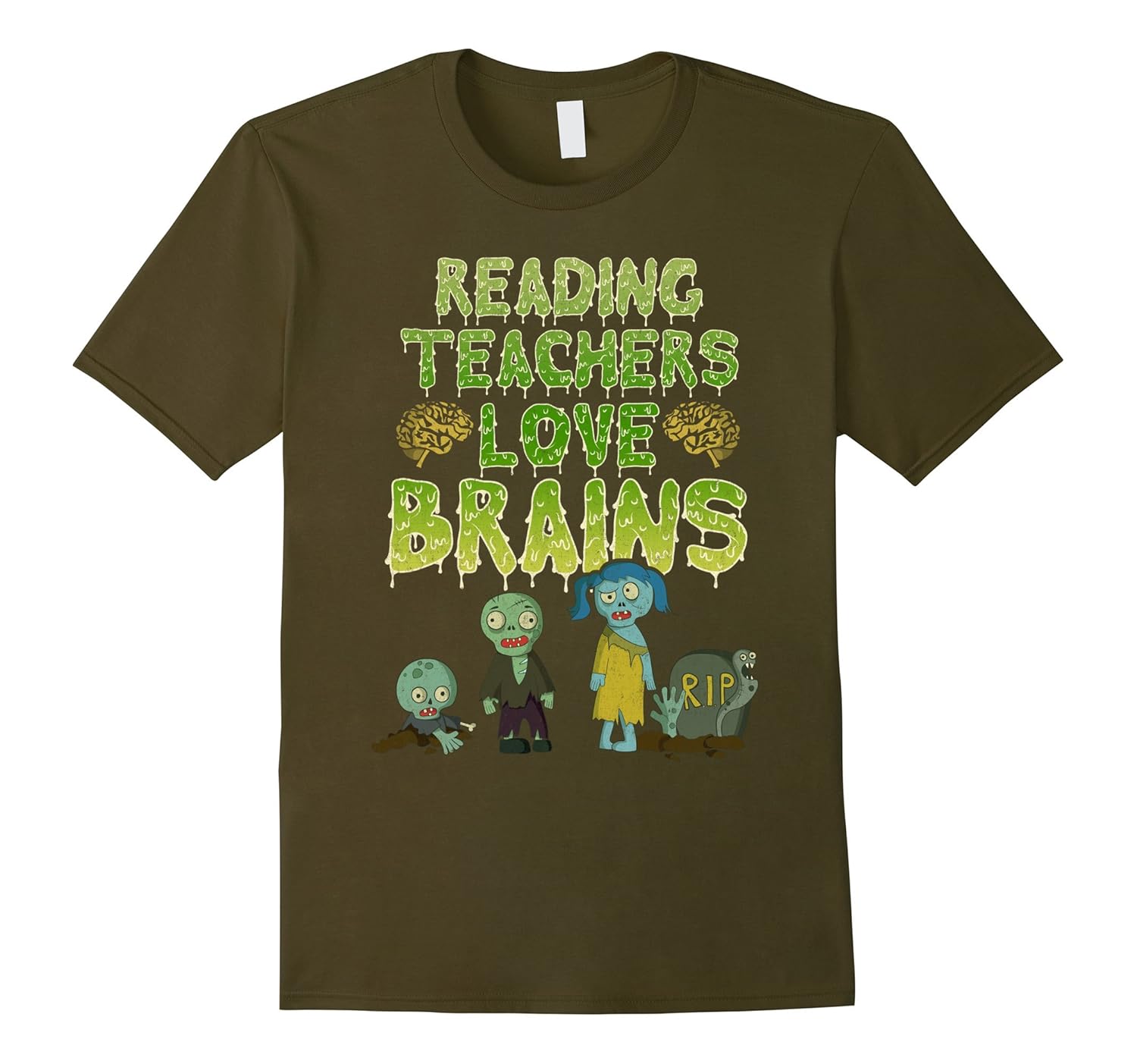 Reading Teachers Love Brains T-Shirt -Halloween Zombie Shirt-ANZ