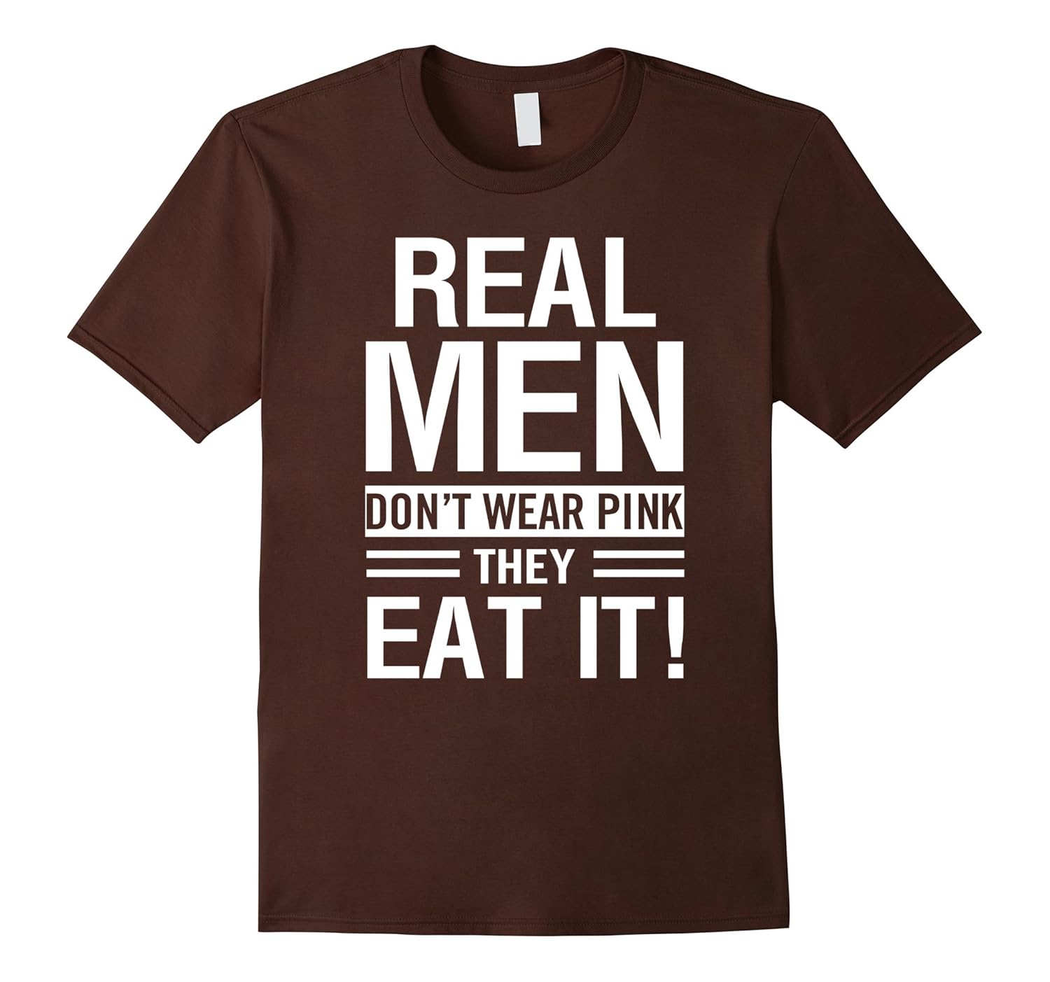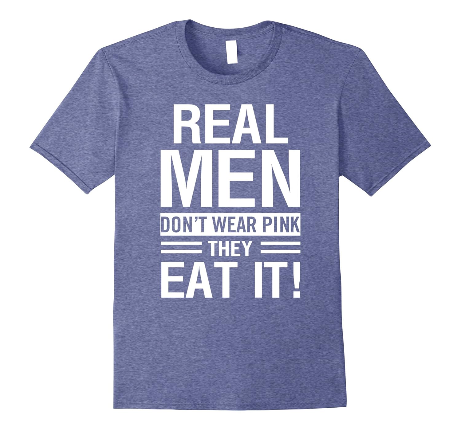 Solid colors: 100% Cotton; Heather Grey: 90% Cotton, 10% Polyester; All Other Heathers: 65% Cotton, 35% Polyester, Imported, Machine wash cold with like colors, dry low heat, REAL MEN DON”T WEAR PINK THEY EAT IT T-SHIRT, Lightweight, Classic fit, Double-needle sleeve and bottom hem