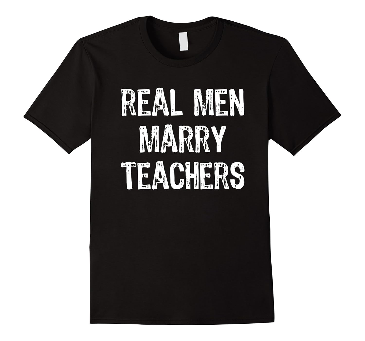Solid colors: 100% Cotton; Heather Grey: 90% Cotton, 10% Polyester; All Other Heathers: 65% Cotton, 35% Polyester; Imported; Machine wash cold with like colors, dry low heat; Real Men Marry Teachers couple love husband wife fiance engagement wedding engaged anniversary future; quote textual saying cool gift ideas joke funny humor sarcastic; Lightweight, Classic fit, Double-needle sleeve and bottom hem