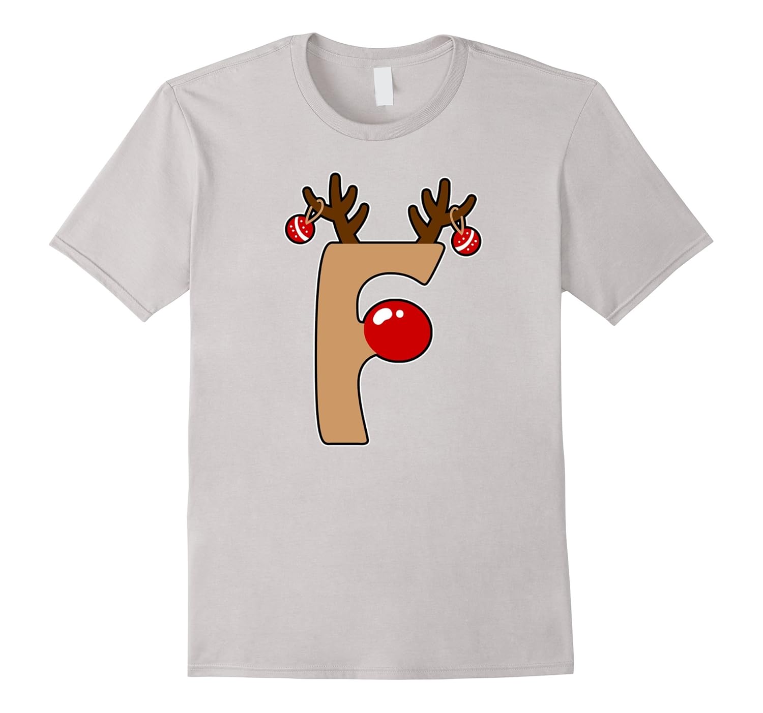 Solid colors: 100% Cotton; Heather Grey: 90% Cotton, 10% Polyester; All Other Heathers: 65% Cotton, 35% Polyester, Imported, Machine wash cold with like colors, dry low heat, Reindeer with a red nose, horns and Christmas ornaments with the letter F T-shirt for monograms, initials, spelling out words or team names. For youth groups, church or community activities, sports events, family reunions and fan clubs on Christmas. Tis the season! Doing Christmas decorations, baking cookies, candy cane or listening to Christmas songs on repeat under Christmas tree, make your holiday mood complete by this Christmas Santa gift. Lightweight, Classic fit, Double-needle sleeve and bottom hem