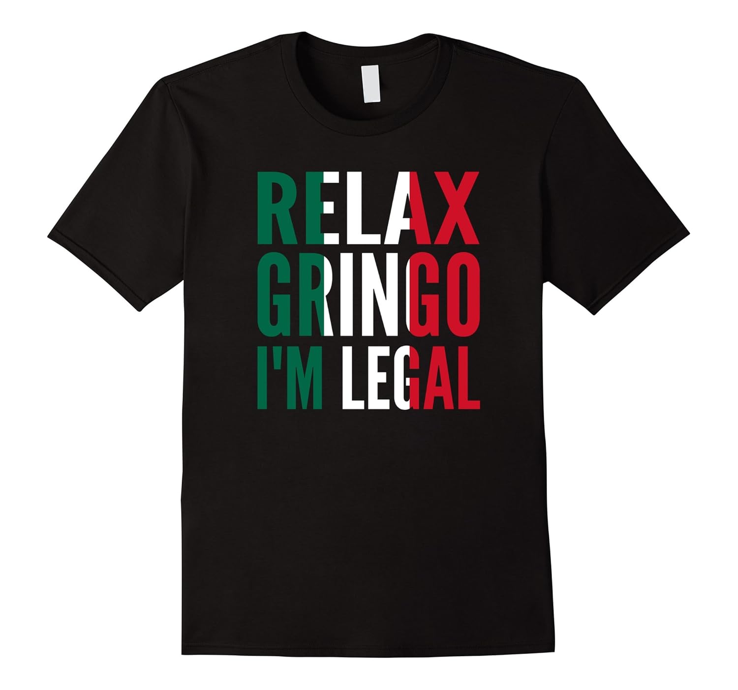 100% Cotton, Imported, Machine wash cold with like colors, dry low heat, Hilarious T-shirt for Mexican American and Proud! “RELAX GRINGO. I”M LEGAL.” in classic green white and red Flag lettering. Tired of trying to prove your status as a legal American citizen. Get this legal tee to silence the haters! No green card required, just pull on this Gringo t-shirt and fool Border Patrol! Does your outward appearance make people question your right to live and work in the US. Do they think you are an illegal alien. Let this immigrant tshirt do the talking for you!, Epic rebuttal for border patrol who hassle you every single time you go across the border to visit your familia! resist indivisible, Lightweight, Classic fit, Double-needle sleeve and bottom hem