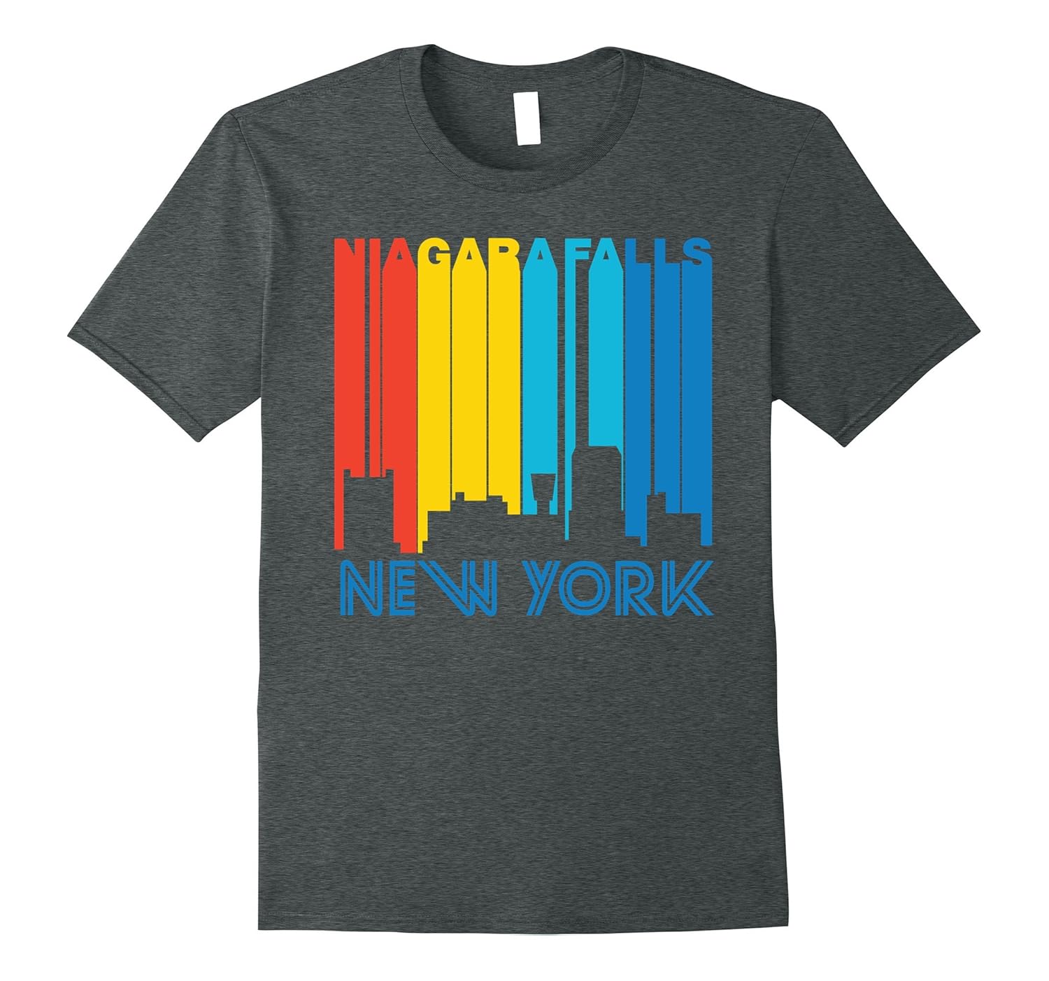 Solid colors: 100% Cotton; Heather Grey: 90% Cotton, 10% Polyester; All Other Heathers: 65% Cotton, 35% Polyester, Imported, Machine wash cold with like colors, dry low heat, Features a cityscape silhouette of Niagara Falls, NY, Great gift idea for anyone from the city, Lightweight, Classic fit, Double-needle sleeve and bottom hem