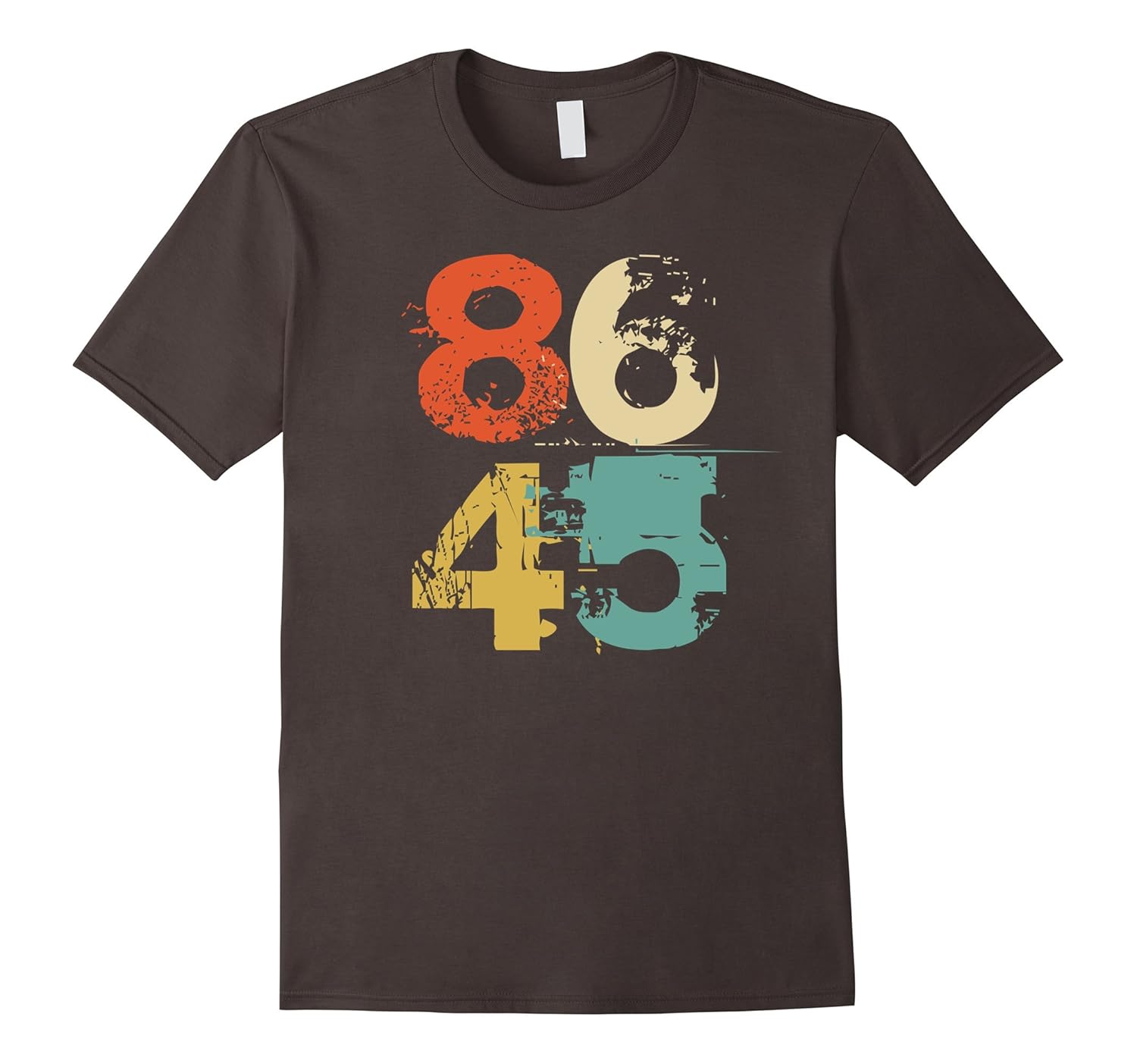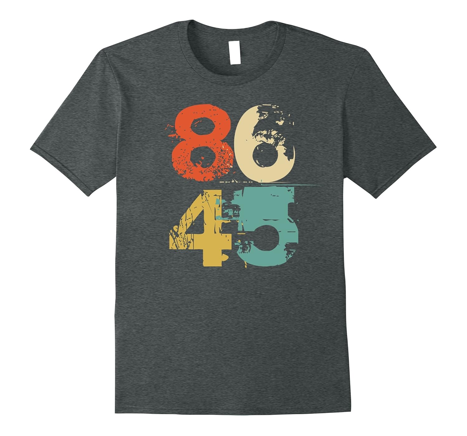 Solid colors: 100% Cotton; Heather Grey: 90% Cotton, 10% Polyester; All Other Heathers: 65% Cotton, 35% Polyester, Imported, Machine wash cold with like colors, dry low heat, Retro 70s Vintage Impeach Trump 8645 Shirt makes a great gift for all who RESIST!, Trump needs to go NOW via either impeachment or the 25th Amendment. Time to 86 45!!, Lightweight, Classic fit, Double-needle sleeve and bottom hem