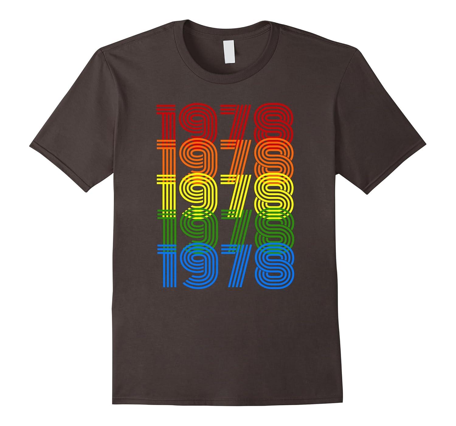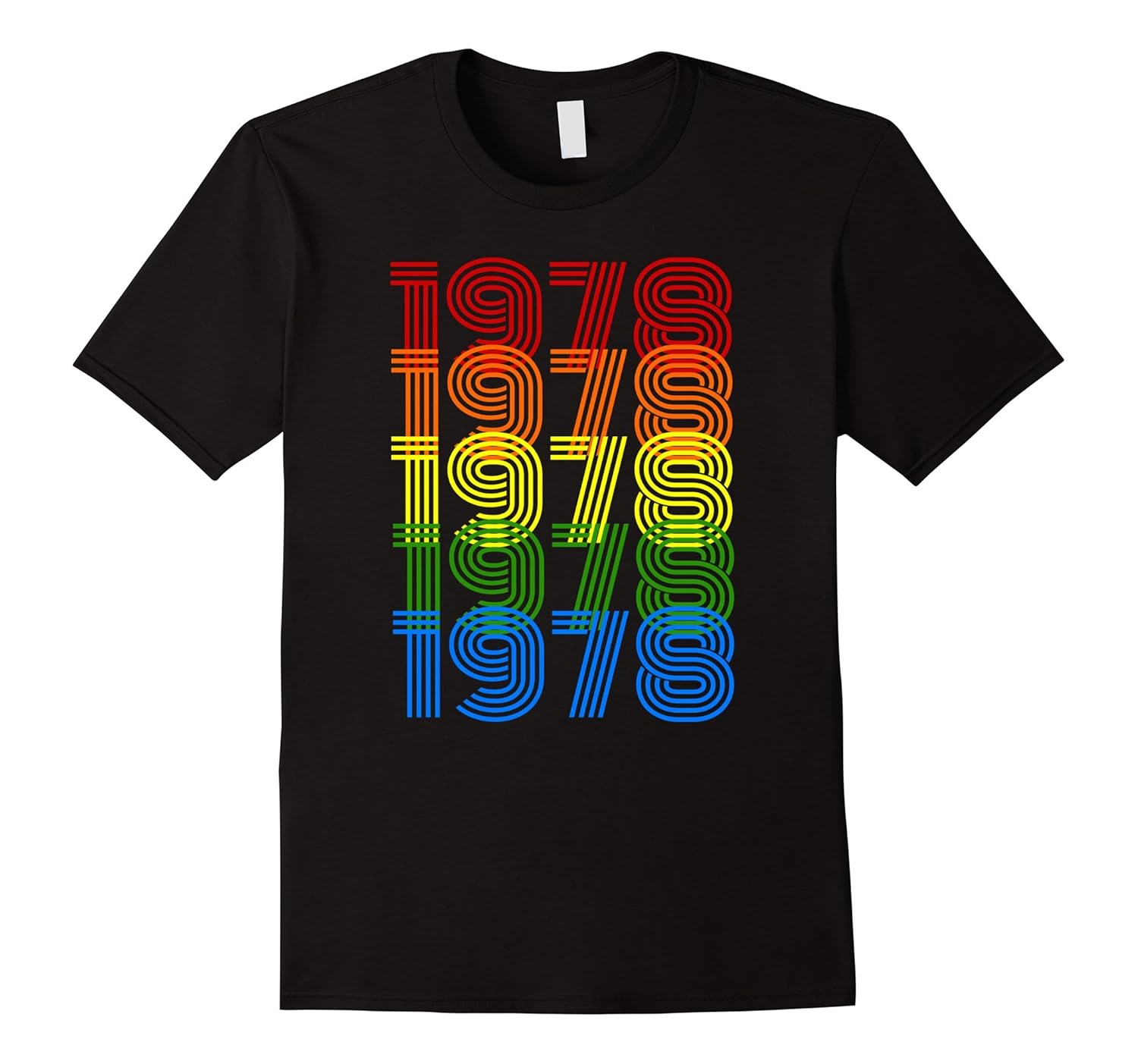 Solid colors: 100% Cotton; Heather Grey: 90% Cotton, 10% Polyester; All Other Heathers: 65% Cotton, 35% Polyester, Imported, Machine wash cold with like colors, dry low heat, Vintage retro rainbow graphic tee shirt for 40th birthday, anniversary, reunion or milestone. Perfect celebratory gift shirt for anyone who was born, graduated or married in 1978 or celebrating a 40 year milestone. Turning 40 years old or celebrating 40 years in 2018 never looked so good. Great visual vintage retro rainbow punch pop graphics. Timeless design you will enjoy for years. Lightweight, Classic fit, Double-needle sleeve and bottom hem