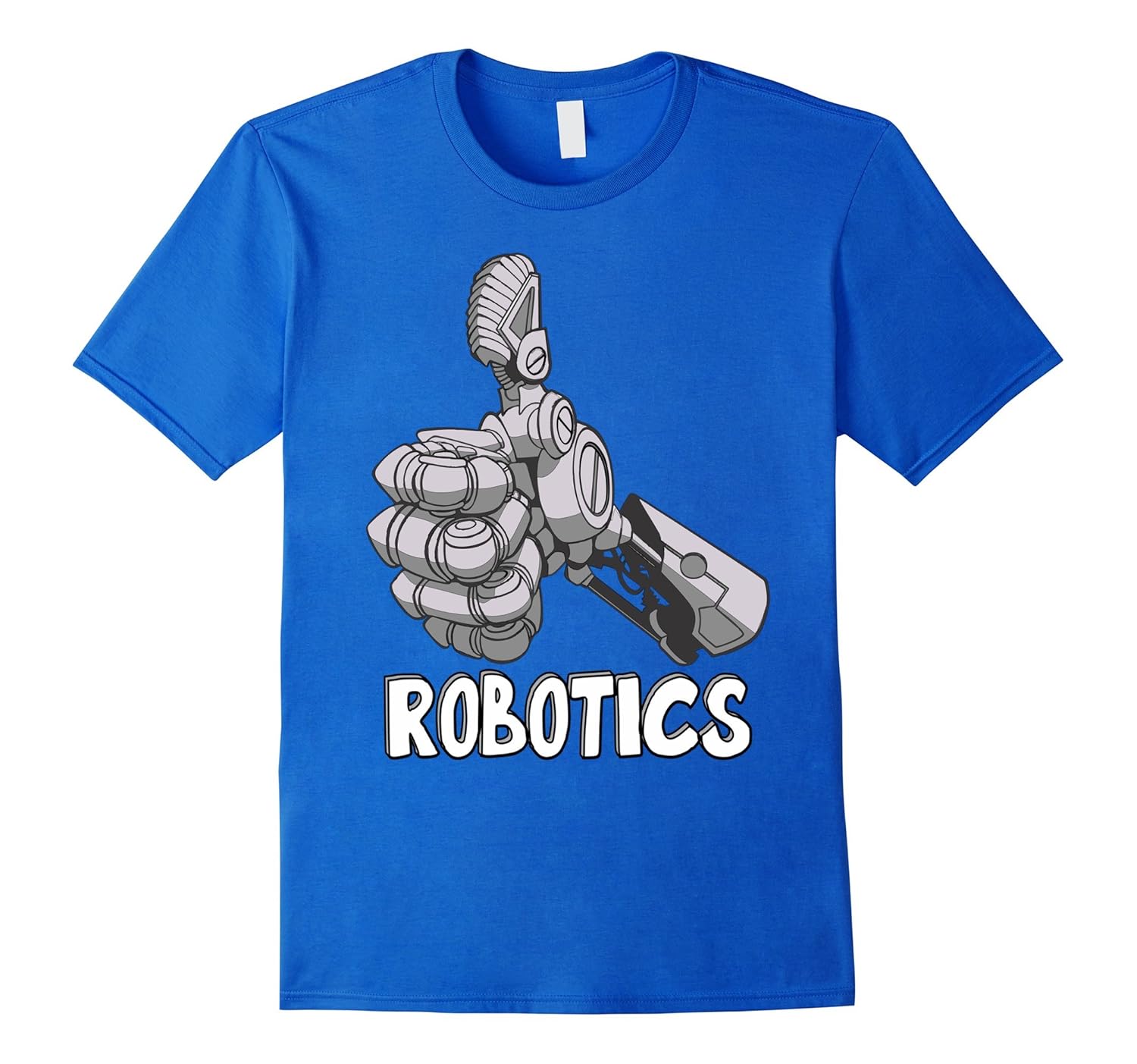 Solid colors: 100% Cotton; Heather Grey: 90% Cotton, 10% Polyester; All Other Heathers: 65% Cotton, 35% Polyester, Imported, Machine wash cold with like colors, dry low heat, Robotics Thumbs Up T-Shirt robot stem boy girl student fun elementary school science, Lightweight, Classic fit, Double-needle sleeve and bottom hem