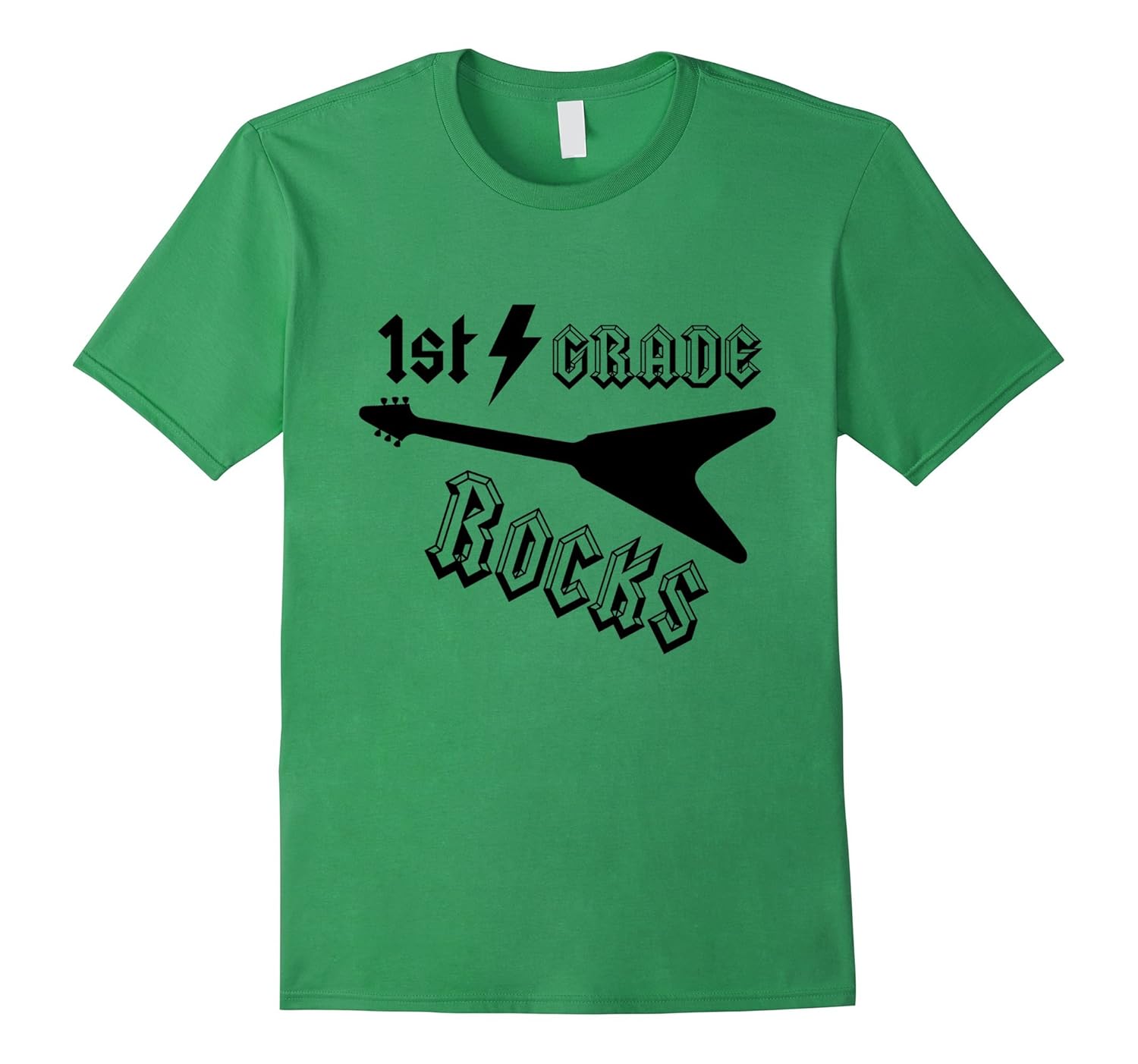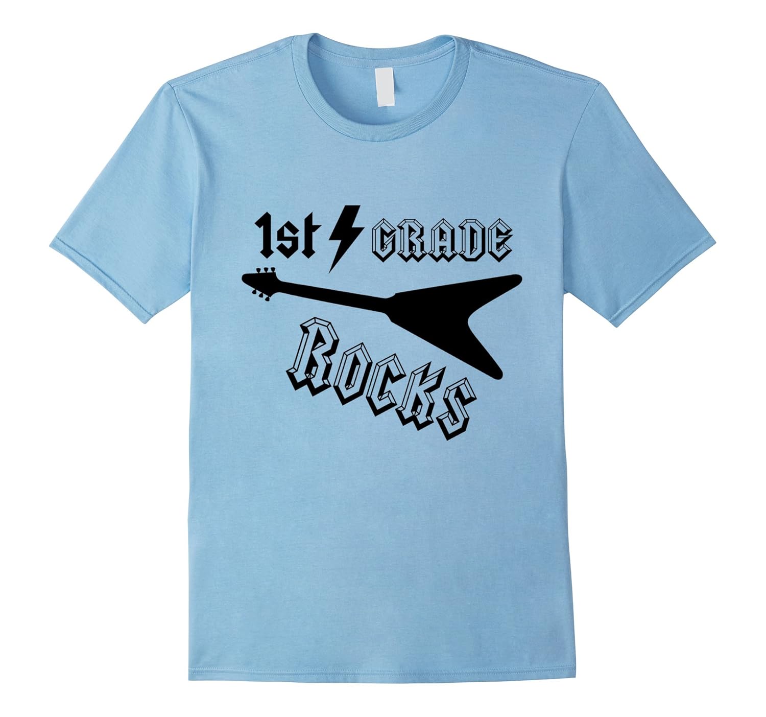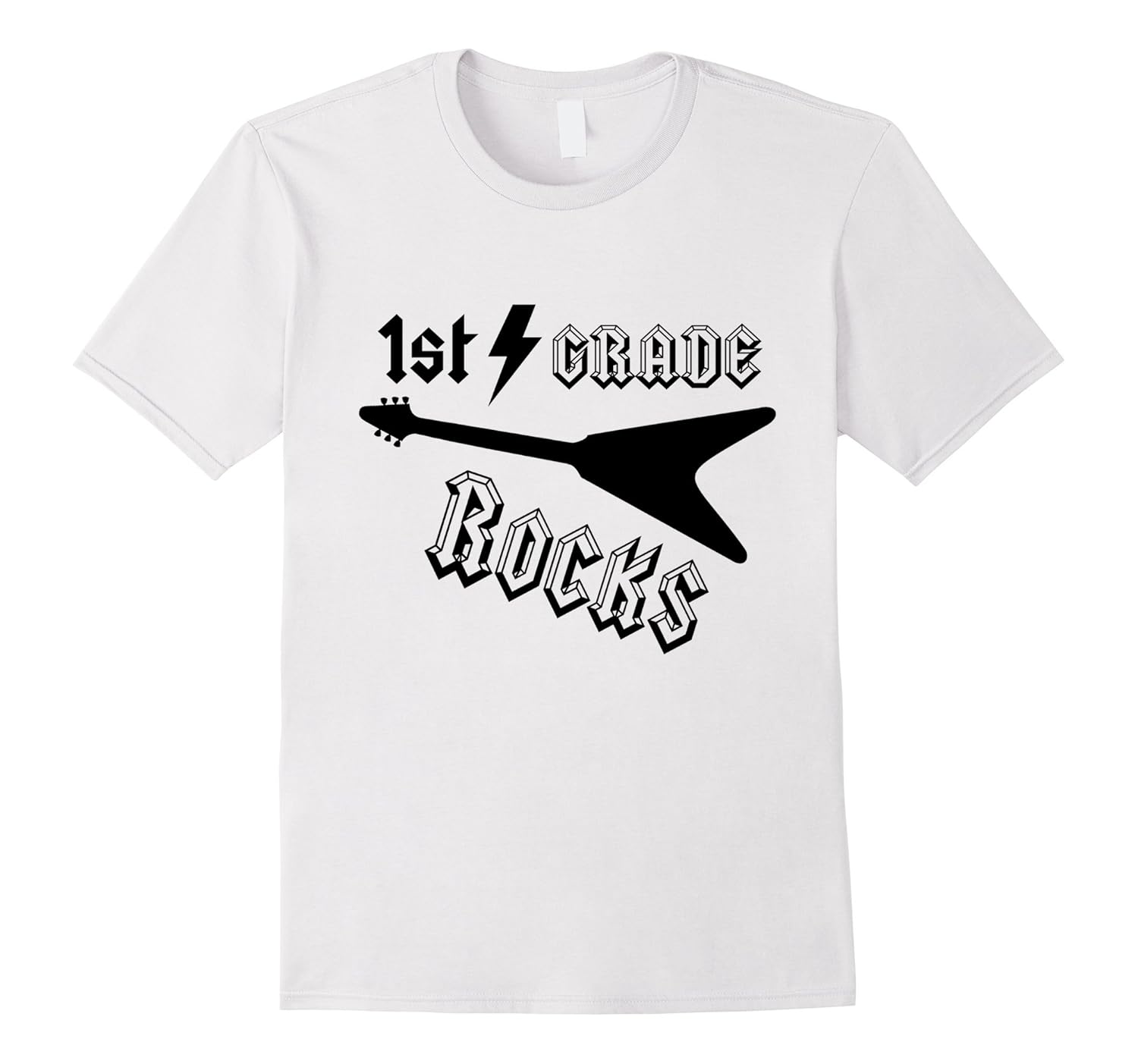 Solid colors: 100% Cotton; Heather Grey: 90% Cotton, 10% Polyester; All Other Heathers: 65% Cotton, 35% Polyester, Imported, Machine wash cold with like colors, dry low heat, This funny and cute rock and roll t shirt saying first grade rock is for any 1st grader, teacher, music teacher, school band, mom, or dad. Perfect gift for first day of school, graduation, or birthday. Features an electric guitar. Lightweight, Classic fit, Double-needle sleeve and bottom hem