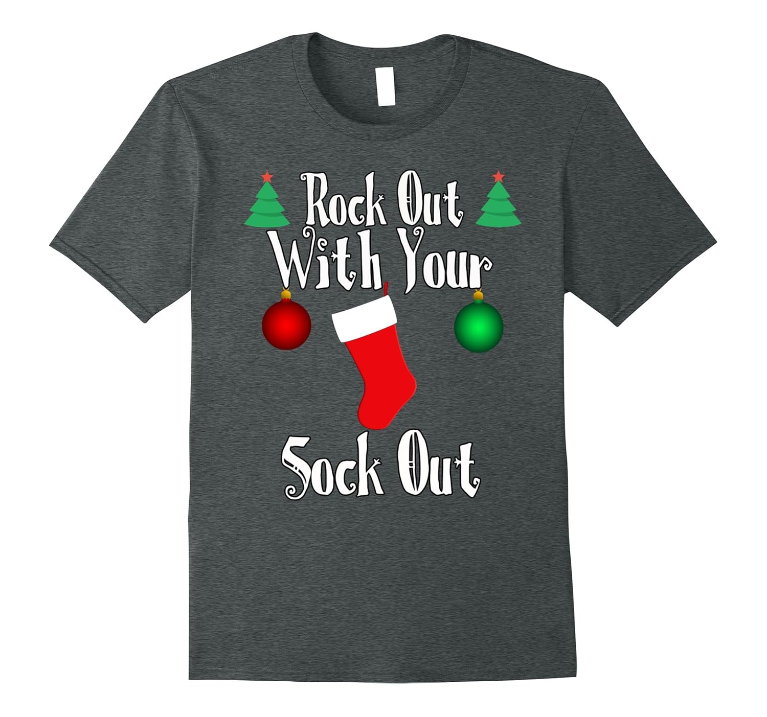 Rock Out With Your Sock Out Funny Ugly Christmas T-shirt-ANZ