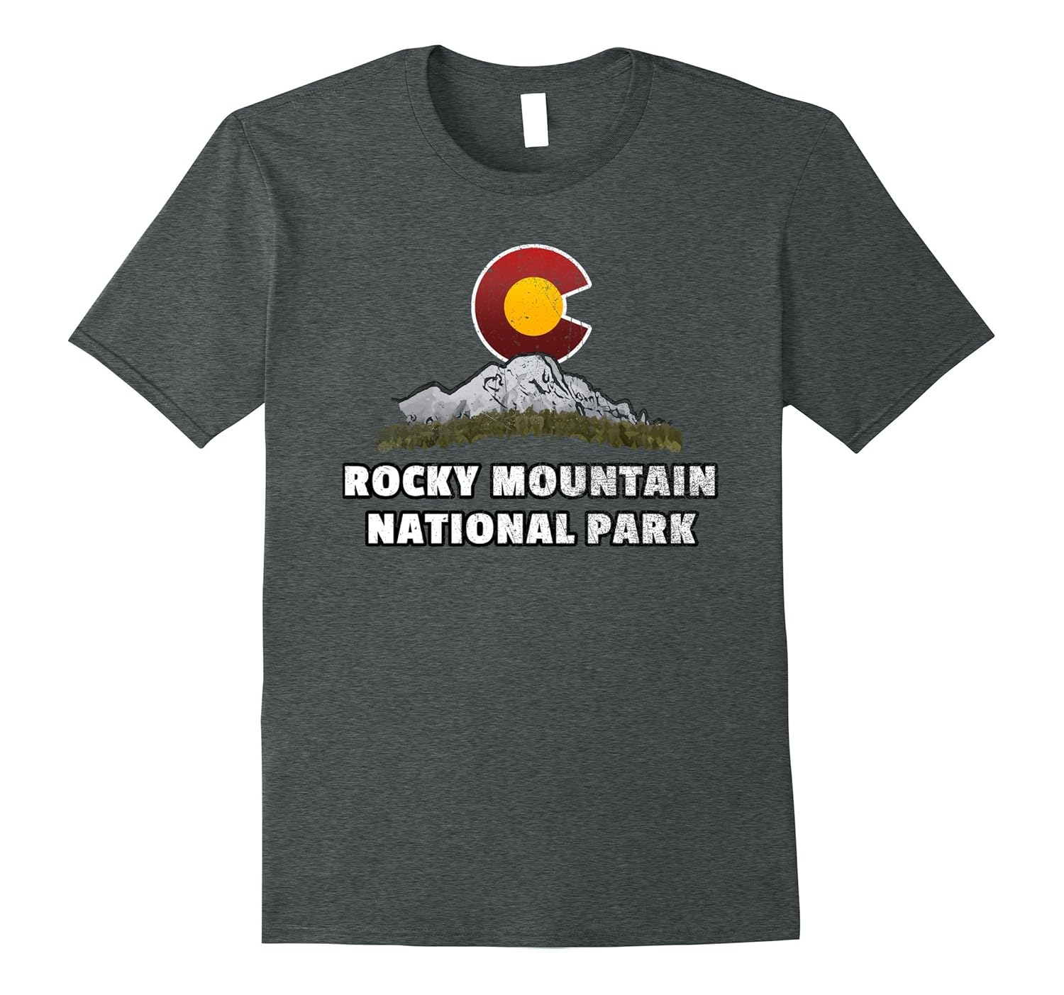 Solid colors: 100% Cotton; Heather Grey: 90% Cotton, 10% Polyester; All Other Heathers: 65% Cotton, 35% Polyester, Imported, Machine wash cold with like colors, dry low heat, Rocky Mountain National Park Shirt with Colorado Flag Inspired mountain scenery! This tshirt can be a gift for men, women, or kids who love Rocky Mountain National Park in Colorado!, If you like to visit Rocky Mountain National Park and hike the trails then check out this tee shirt! Can be a great souvenir!, Lightweight, Classic fit, Double-needle sleeve and bottom hem