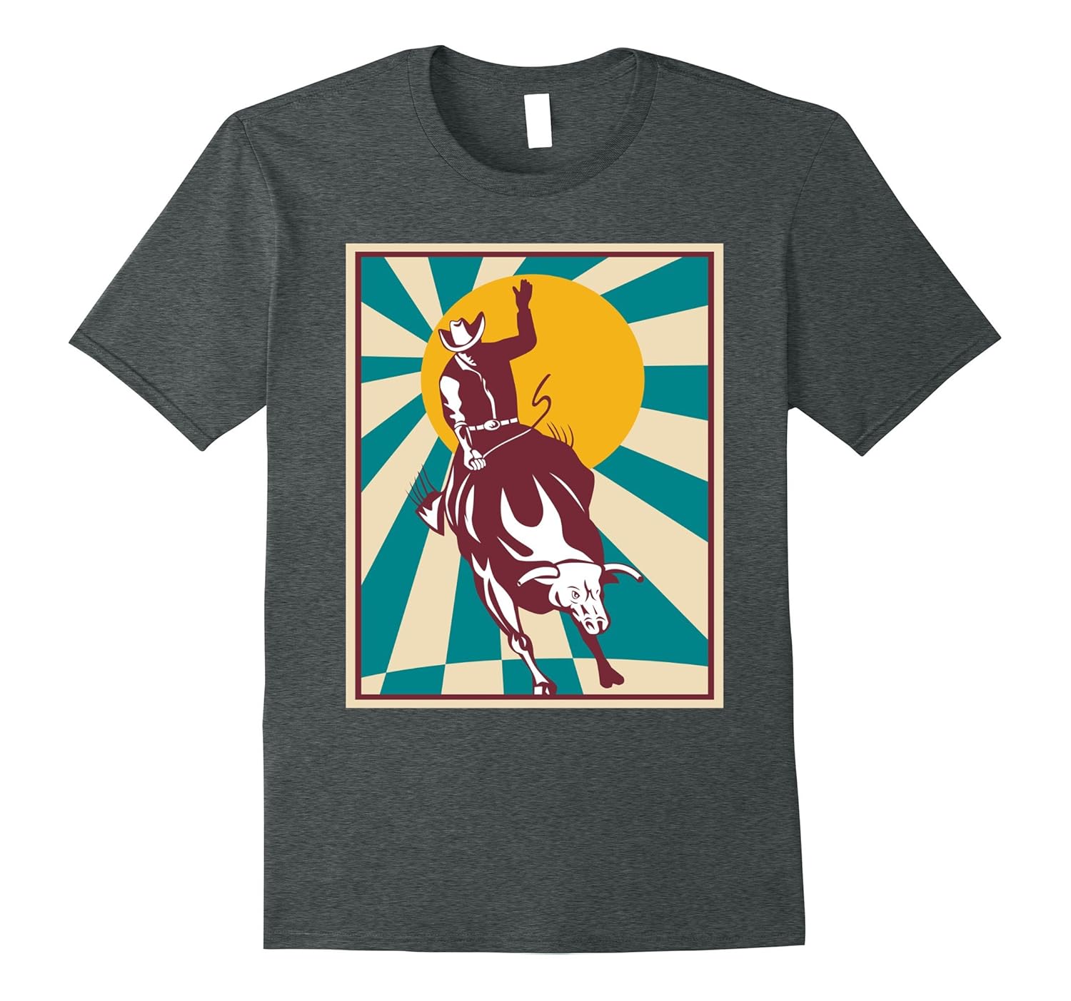 Solid colors: 100% Cotton; Heather Grey: 90% Cotton, 10% Polyester; All Other Heathers: 65% Cotton, 35% Polyester, Imported, Machine wash cold with like colors, dry low heat, This cowboy Shirt depicts a bronc rider riding on a bucking horse. This rodeo tee has a vintage or retro theme. This is the perfect rodeo shirt for anyone who likes cowboys, bronc riding, bull riding, or rodeos!, Lightweight, Classic fit, Double-needle sleeve and bottom hem