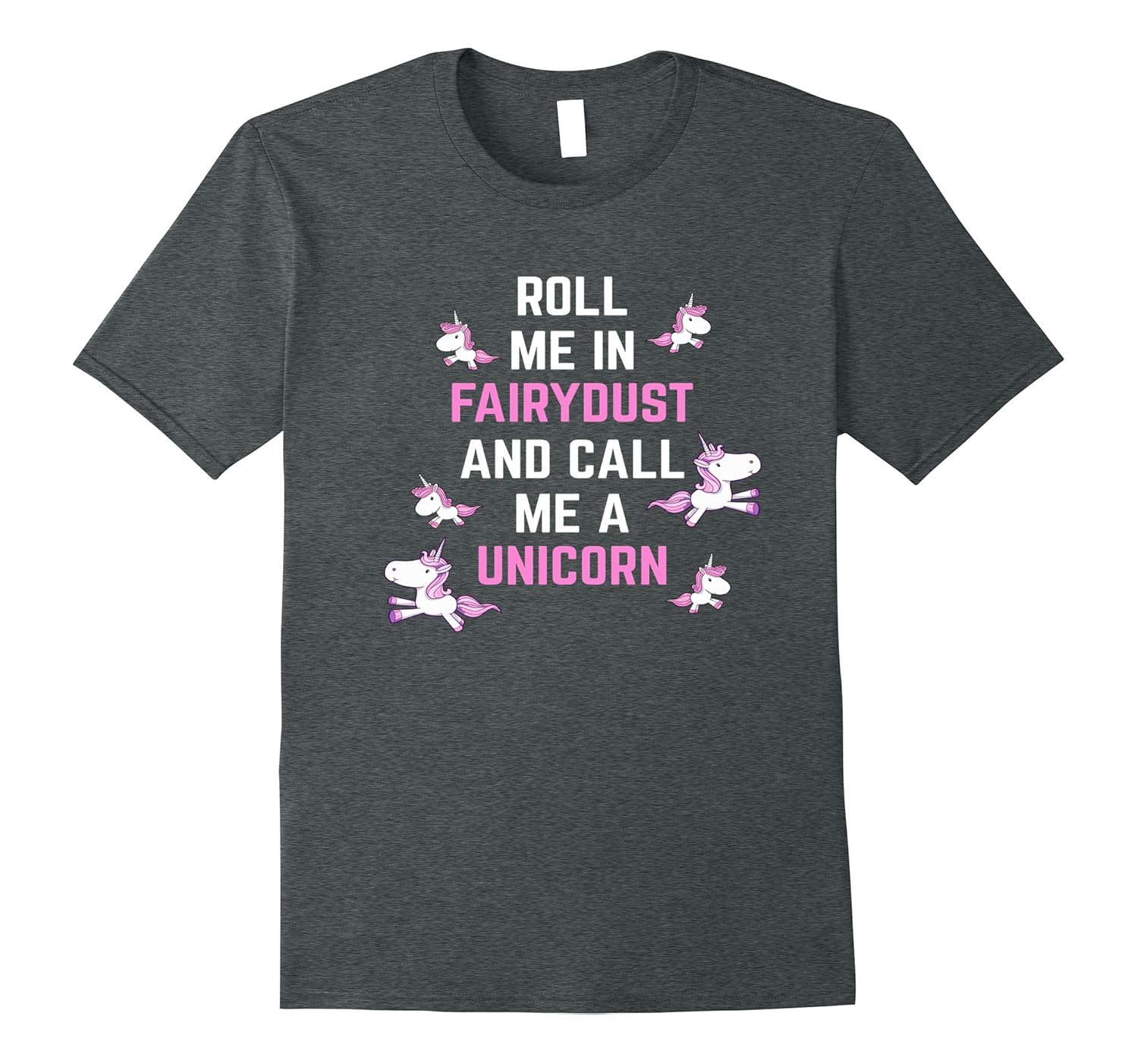 Solid colors: 100% Cotton; Heather Grey: 90% Cotton, 10% Polyester; All Other Heathers: 65% Cotton, 35% Polyester, Imported, Machine wash cold with like colors, dry low heat, Roll Me In Fairy Dust And Call Me A Unicorn Funny T-Shirt. This Adorable Roll Me In Fairy Dust And Call Me A Unicorn is a unique party t shirt Great for Christmas or any other Holiday!, Unicorns and fairy dust there is simply nothing better, show the world how much you love Unicorns, this unicorn t shirt is perfect for Men Women and adults and makes a cool gift for Christmas or any other occasion, Lightweight, Classic fit, Double-needle sleeve and bottom hem