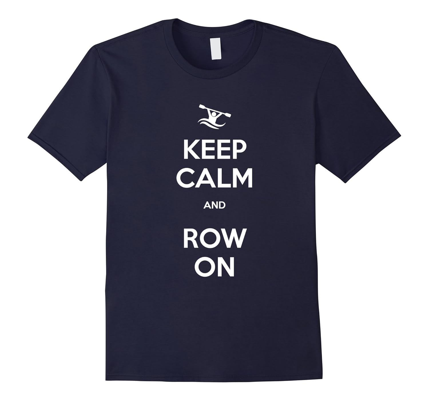 Solid colors: 100% Cotton; Heather Grey: 90% Cotton, 10% Polyester; All Other Heathers: 65% Cotton, 35% Polyester, Imported, Machine wash cold with like colors, dry low heat, This funny tee is perfect for anyone who loves rowing crew, kayacking, stand up paddleboarding, or white water rafting. It features the phrase “keep calm and row on” and features a person with a paddle. For a relaxed fit, order a size up. This would make a great gift for your favorite kayaker, or a great team shirt for a college rowing crew! Order your”s today!, Lightweight, Classic fit, Double-needle sleeve and bottom hem
