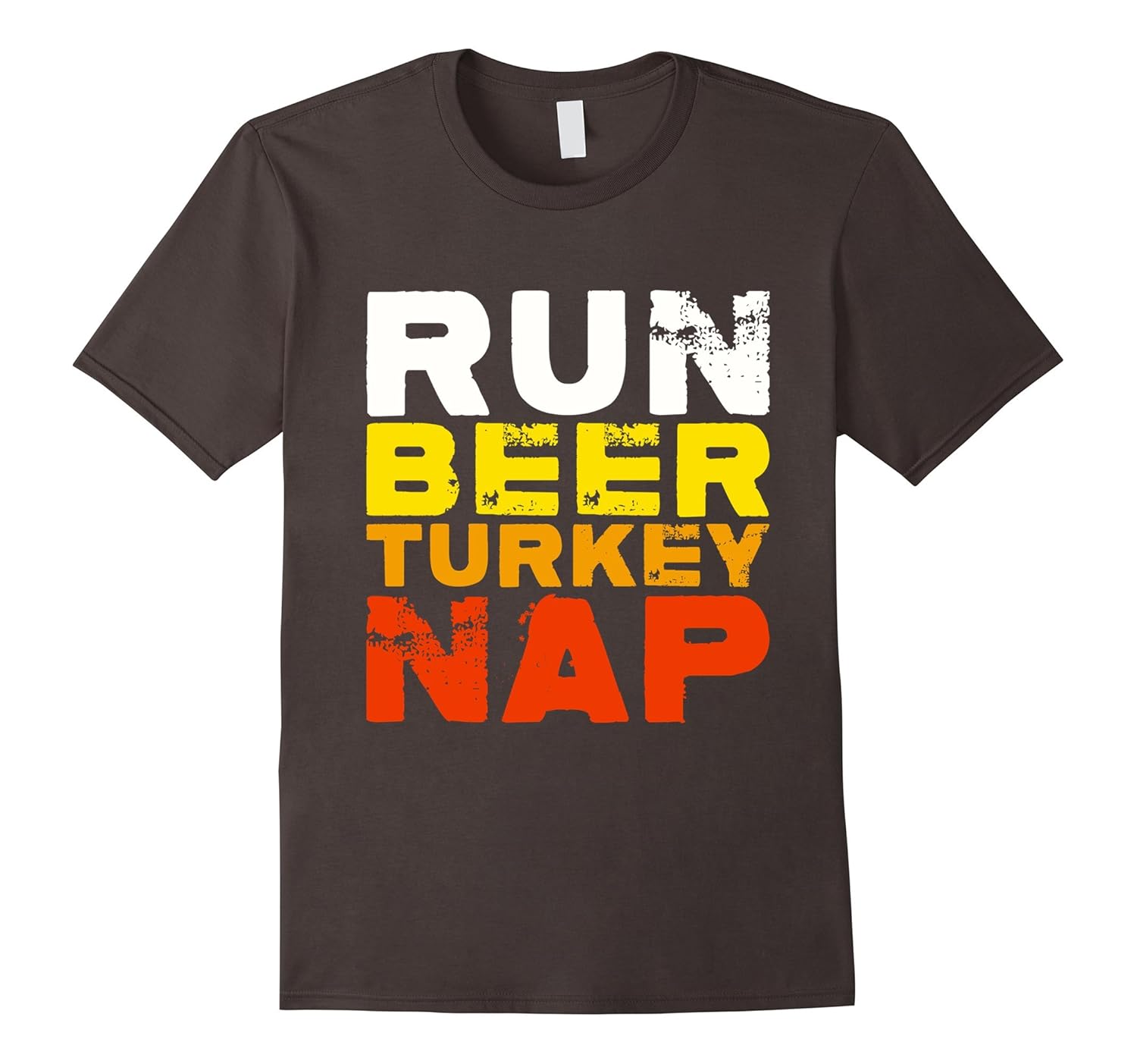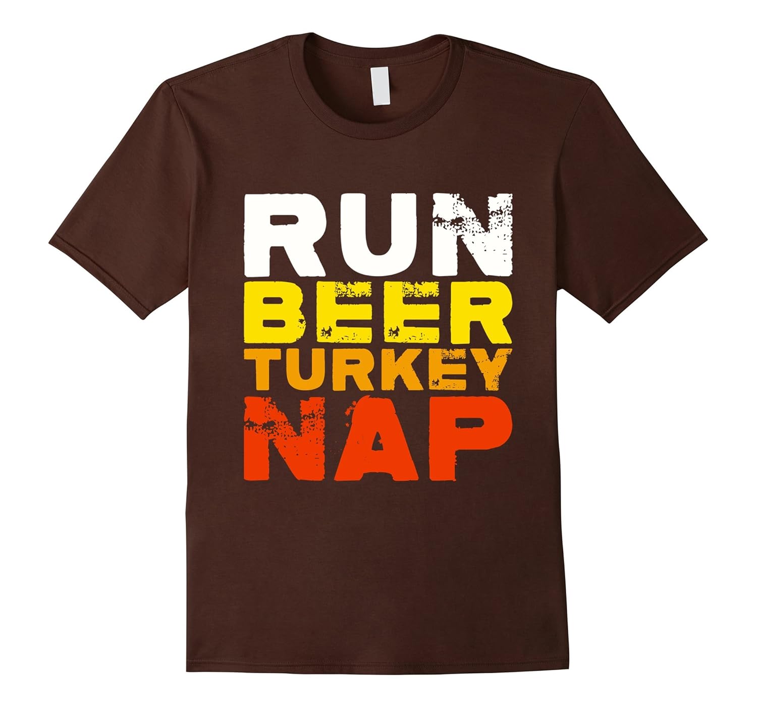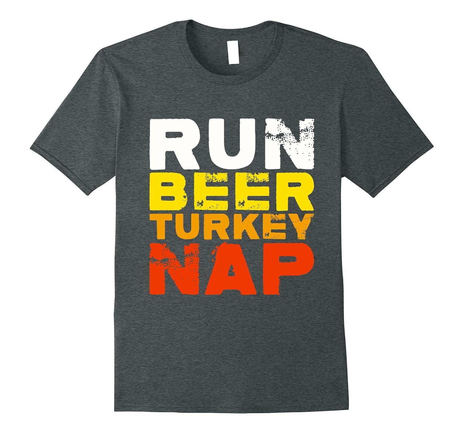 Solid colors: 100% Cotton; Heather Grey: 90% Cotton, 10% Polyester; All Other Heathers: 65% Cotton, 35% Polyester, Imported, Machine wash cold with like colors, dry low heat, After the race, you”ll be going home to a Thanksgiving dinner fit for a king or queen. Why not do so in style with this funny run beer turkey nap shirt!, This shirt makes a great gift for people who run in 5k or a small local Turkey Trot. You”re runner friends will love this shirt!, Lightweight, Classic fit, Double-needle sleeve and bottom hem