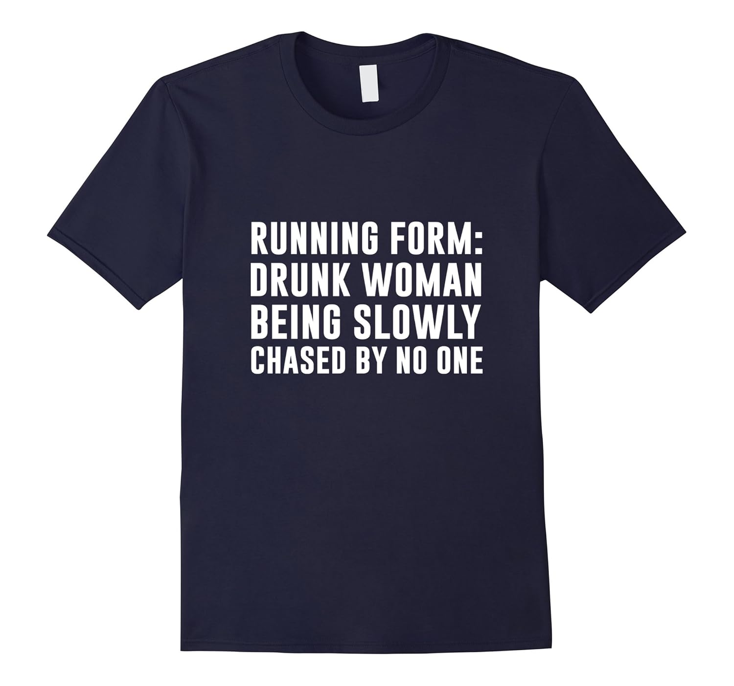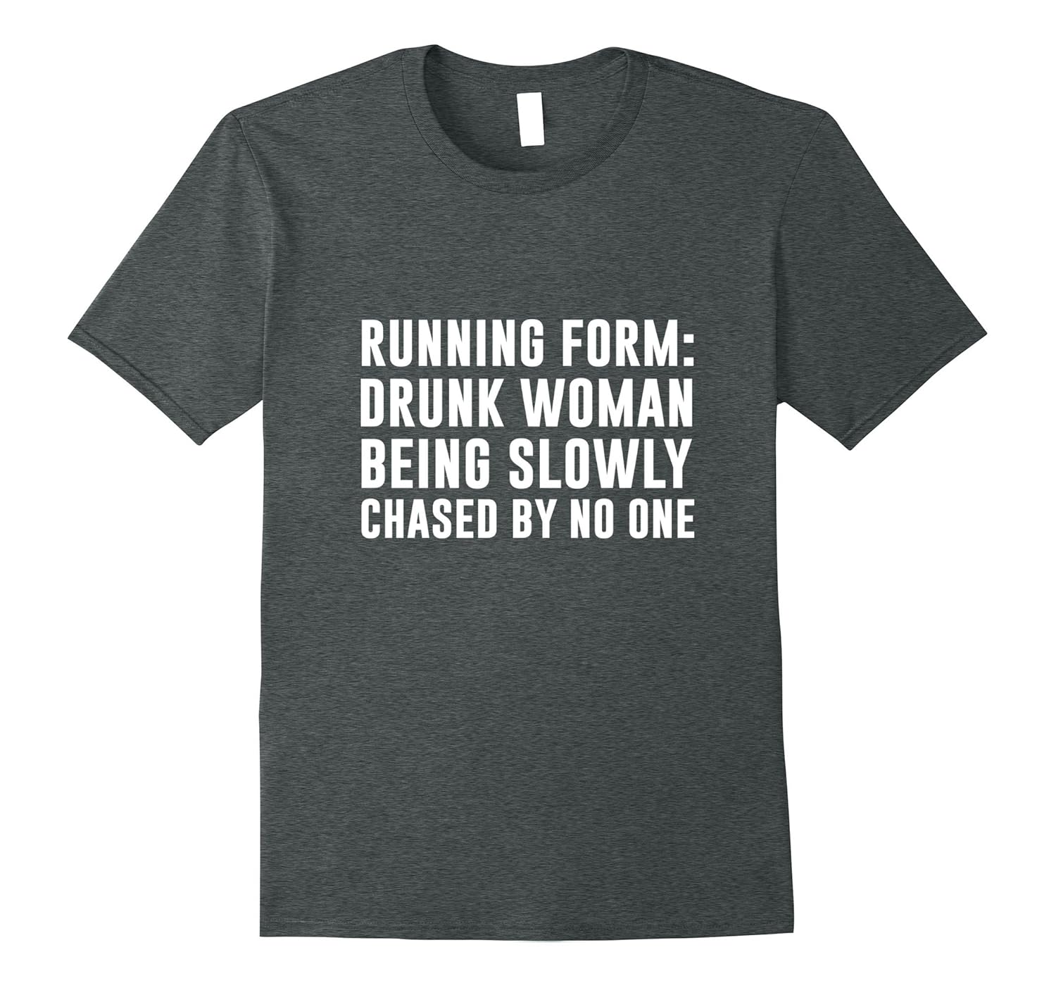 Solid colors: 100% Cotton; Heather Grey: 90% Cotton, 10% Polyester; All Other Heathers: 65% Cotton, 35% Polyester, Imported, Machine wash cold with like colors, dry low heat, Running form drunk woman being slowly chased by no one, runner shirt,running shirt, Lightweight, Classic fit, Double-needle sleeve and bottom hem